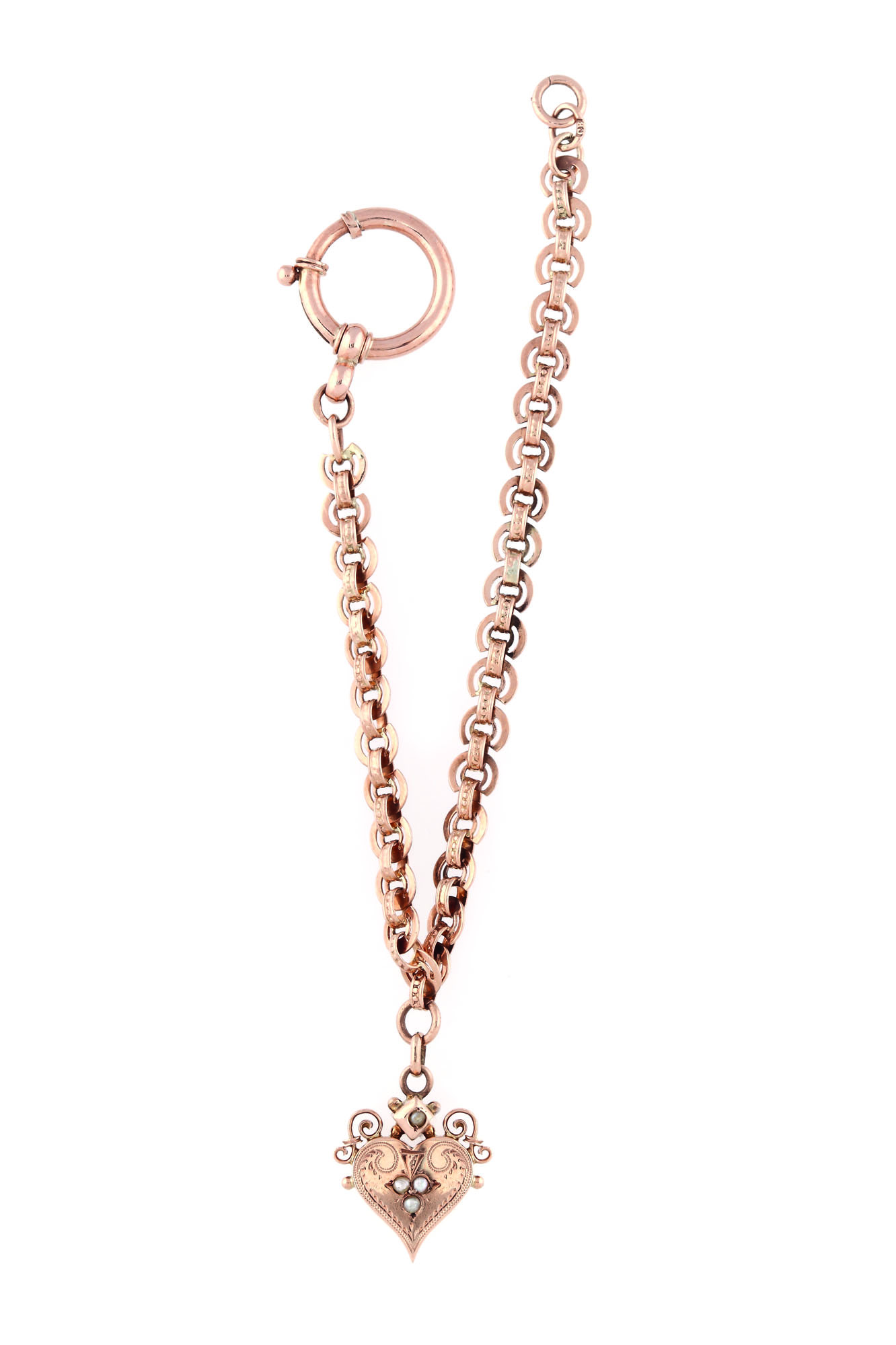 457. Brăţară din aur, cu pandant-inimă ornat cu perle, cca. 1930
