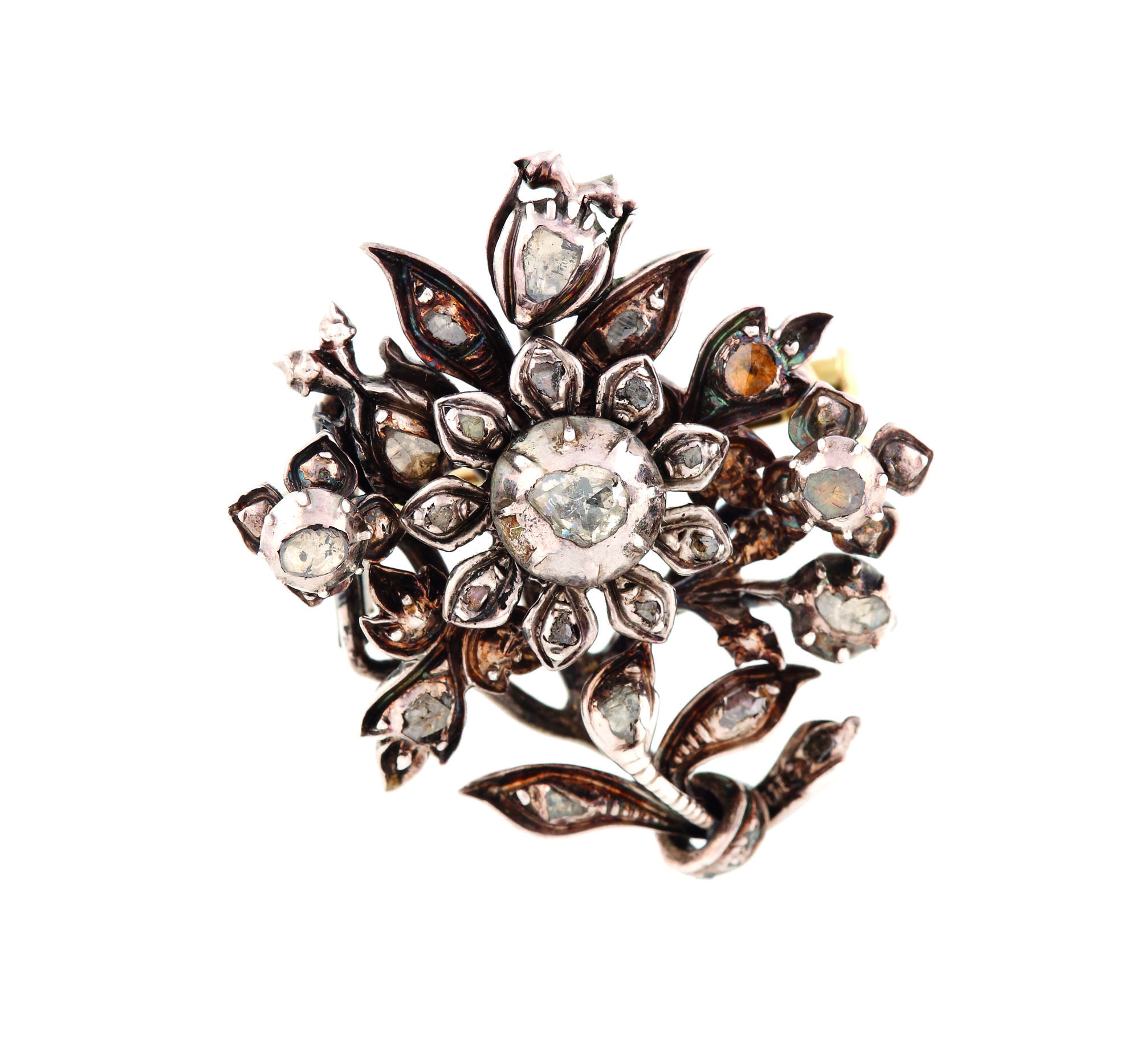 455. Broşă - buchet floral din aur şi argint, decorat cu diamante, cca. 1890-1900