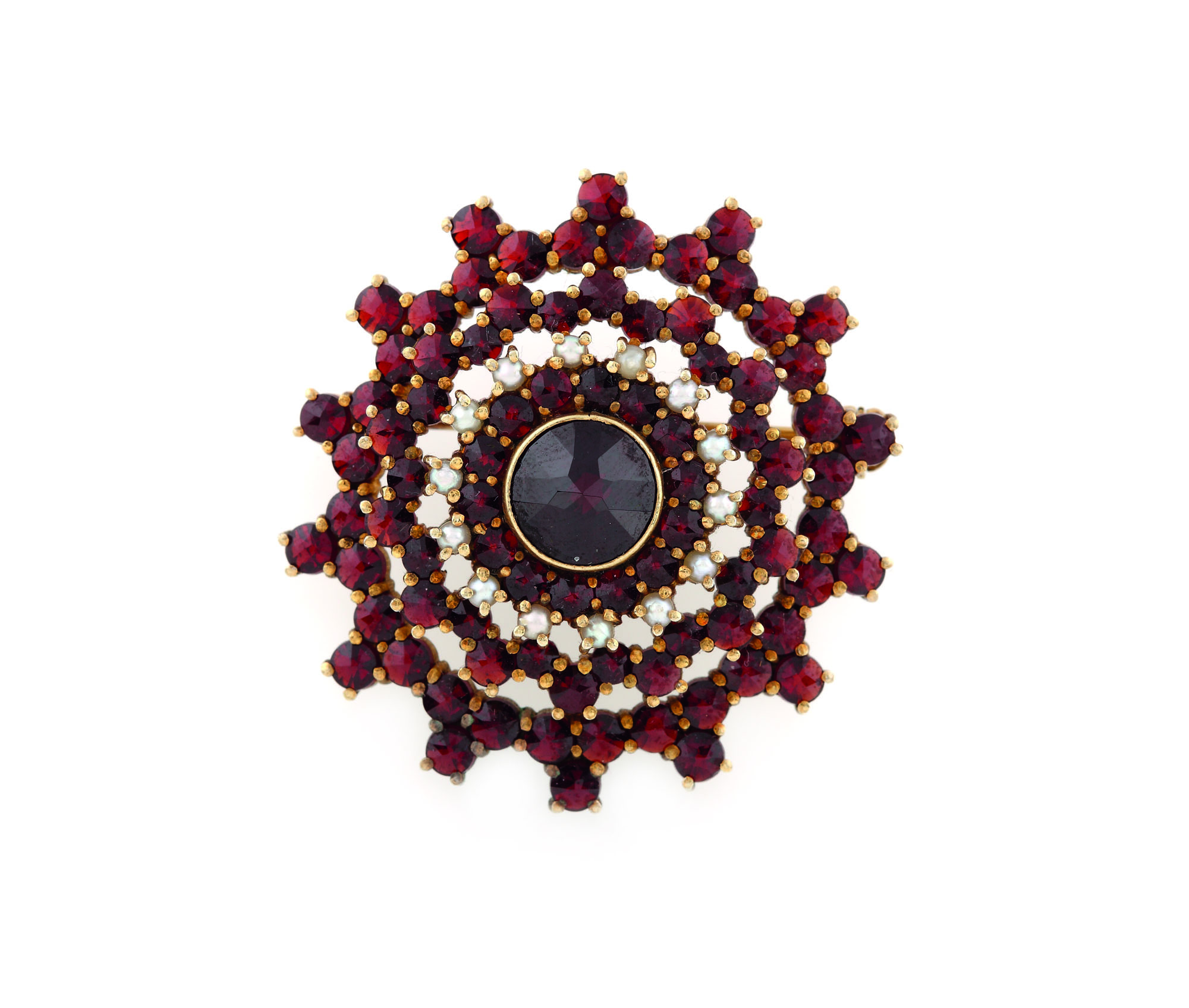 494. Broșă din argint aurit, ornată cu granate și perle [cca. 1970-1980]