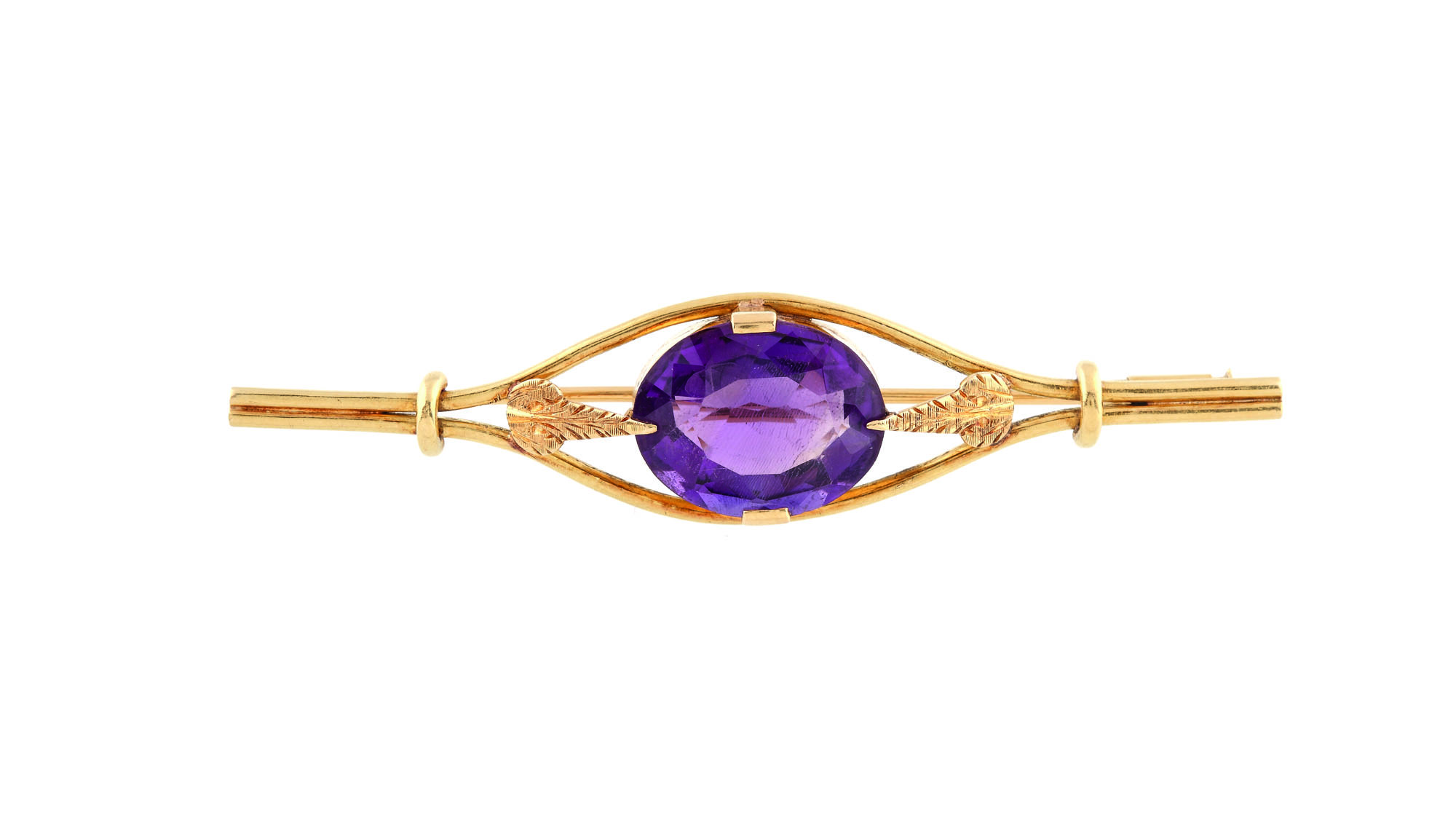 353. Broșă din aur, decorată cu un mare ametist, cca. 1900