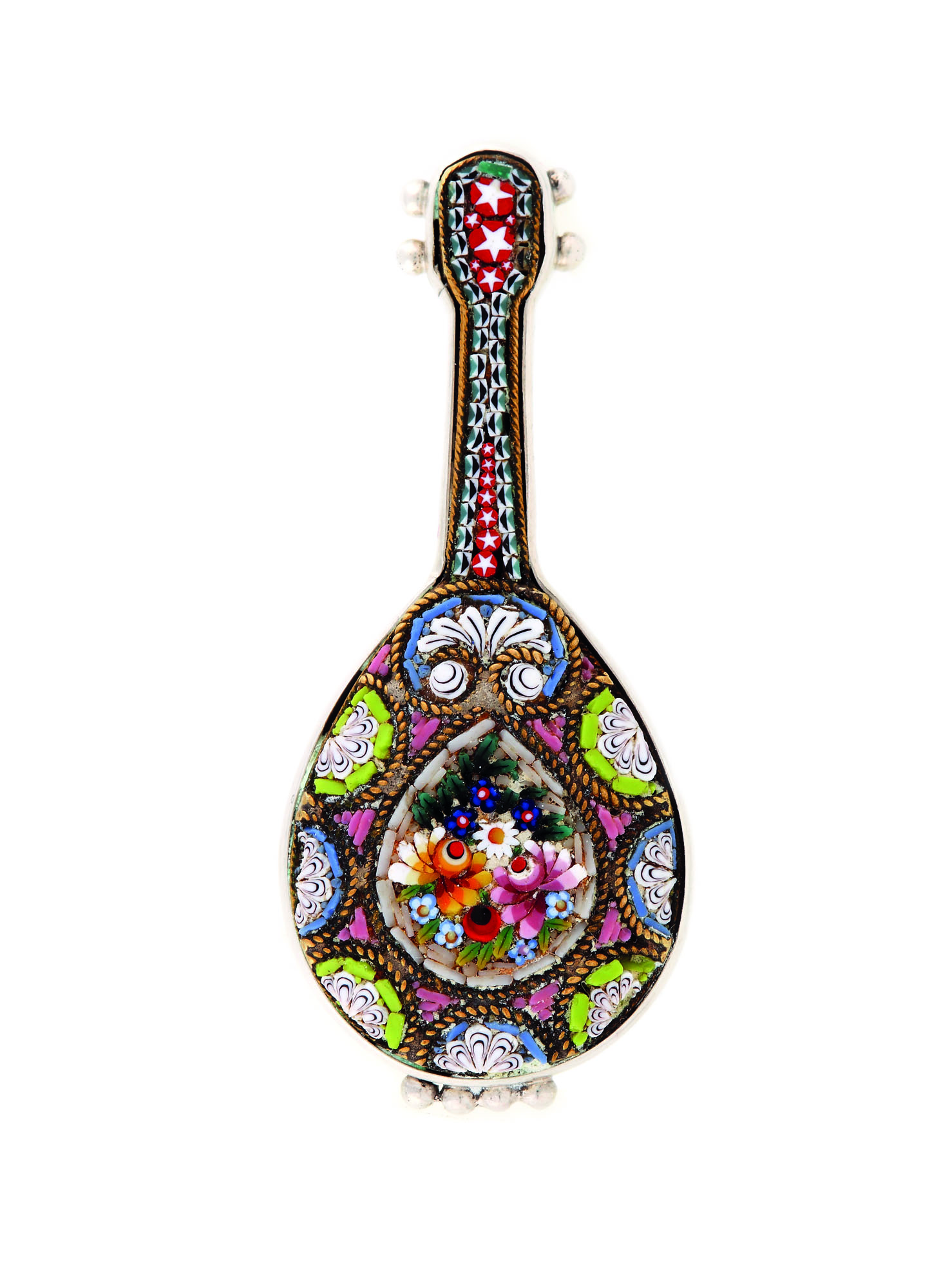 343. Broşă Novelty din argint, decorată cu micromozaic, cca. 1910-1920
