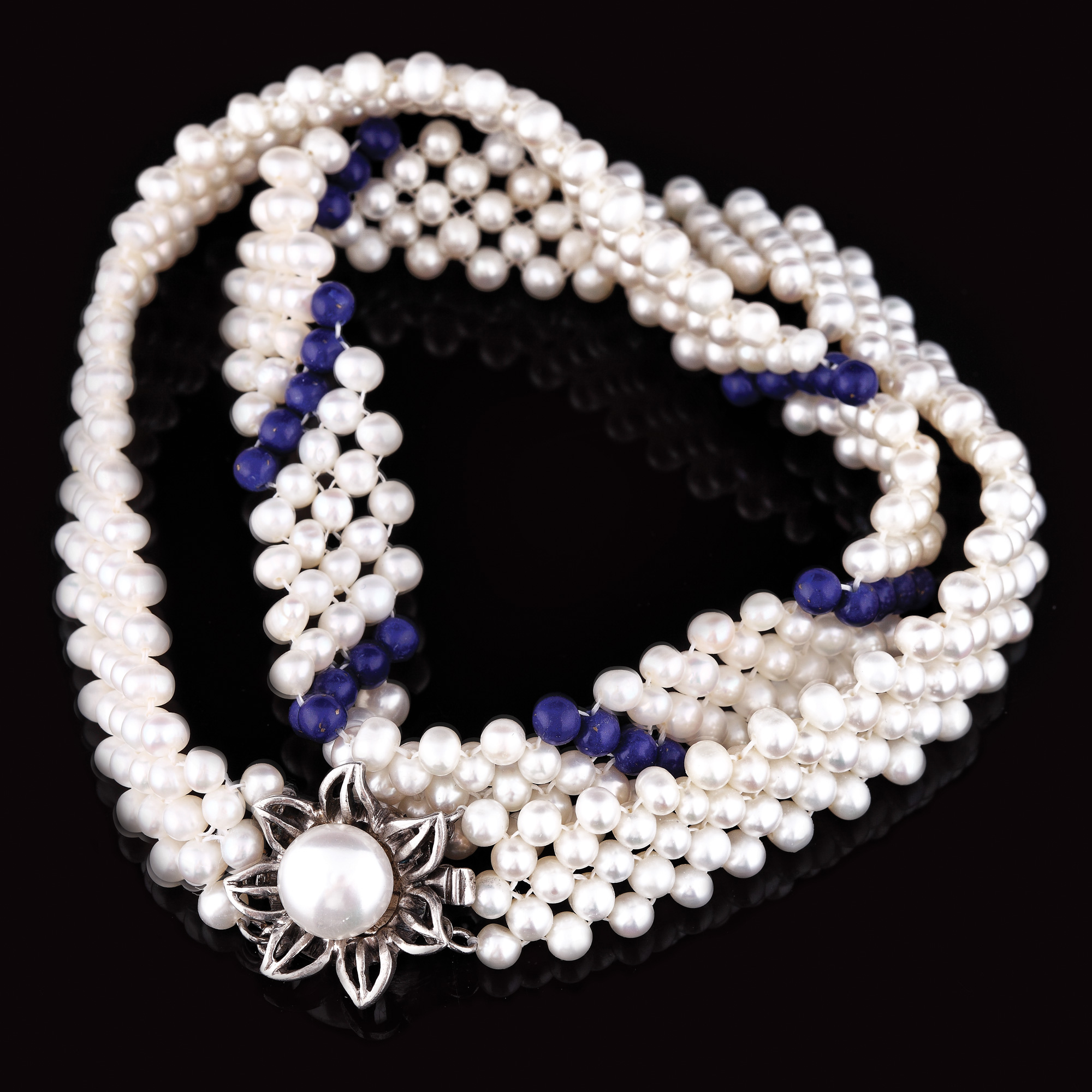 397. Colier din argint, decorat cu perle şi Lapis Lazuli, cca. 1940