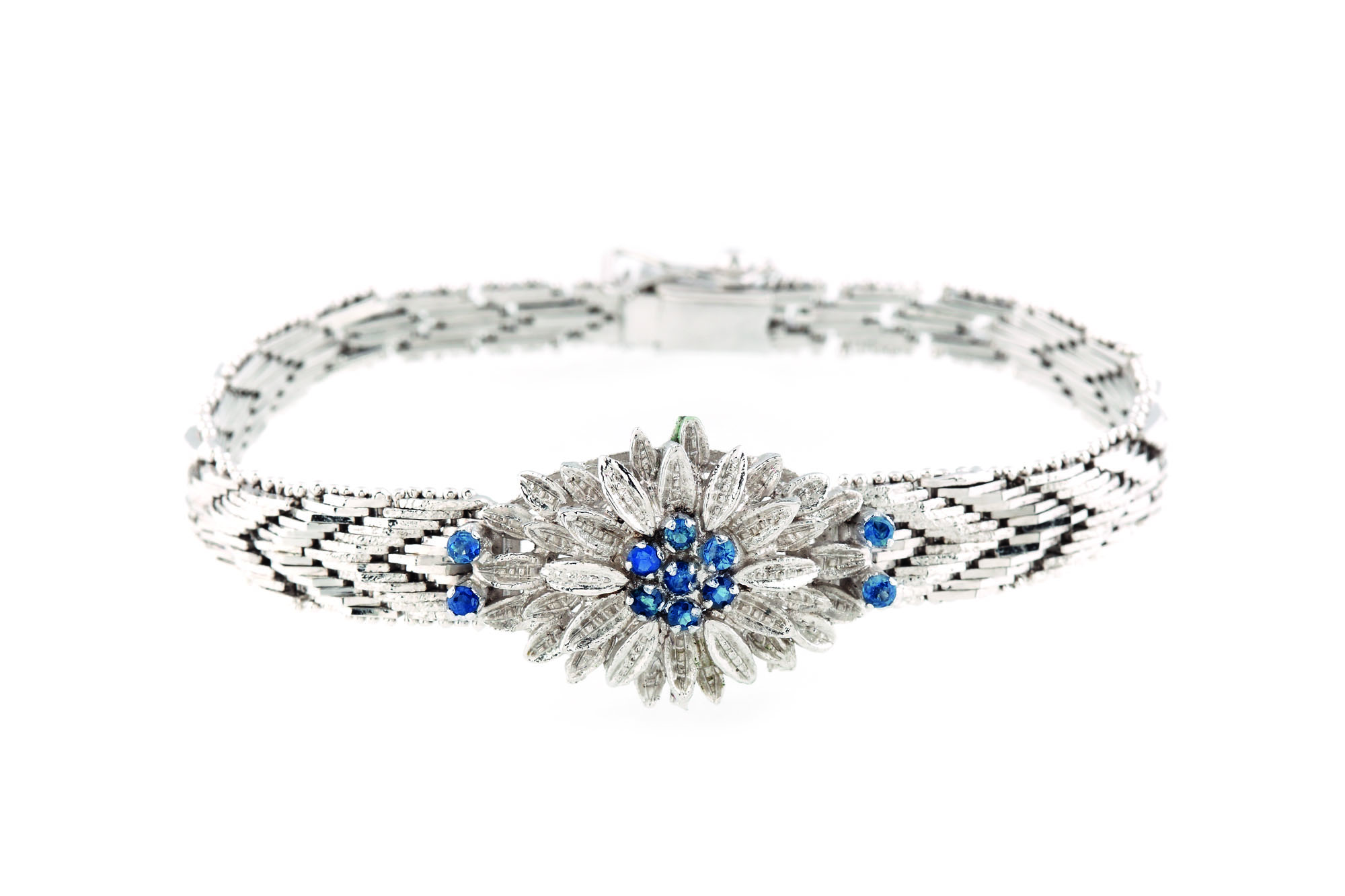341. Elegantă brăţară din argint, ornată cu safire