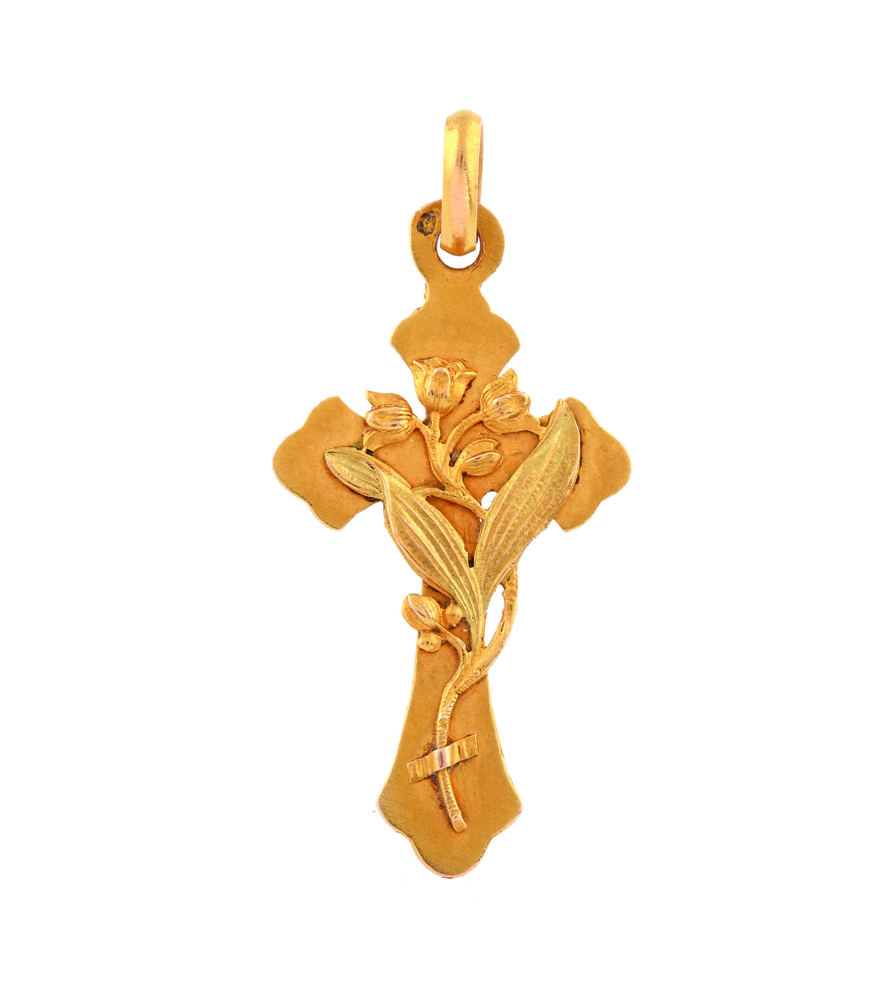 408. "Flori de lăcrămioare" - pandantiv-cruce Art Nouveau din aur, cca. 1900