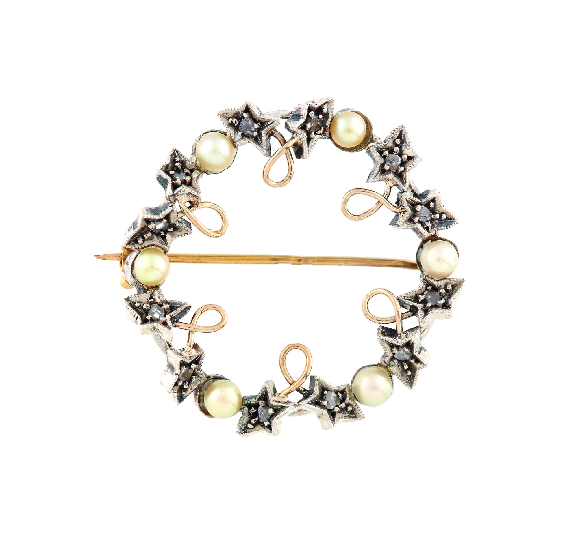 458. "Frunze de iederă şi boabe de vâsc" - broşă Art Nouveau din aur şi argint, decorată cu diamante şi perle, cca. 1900