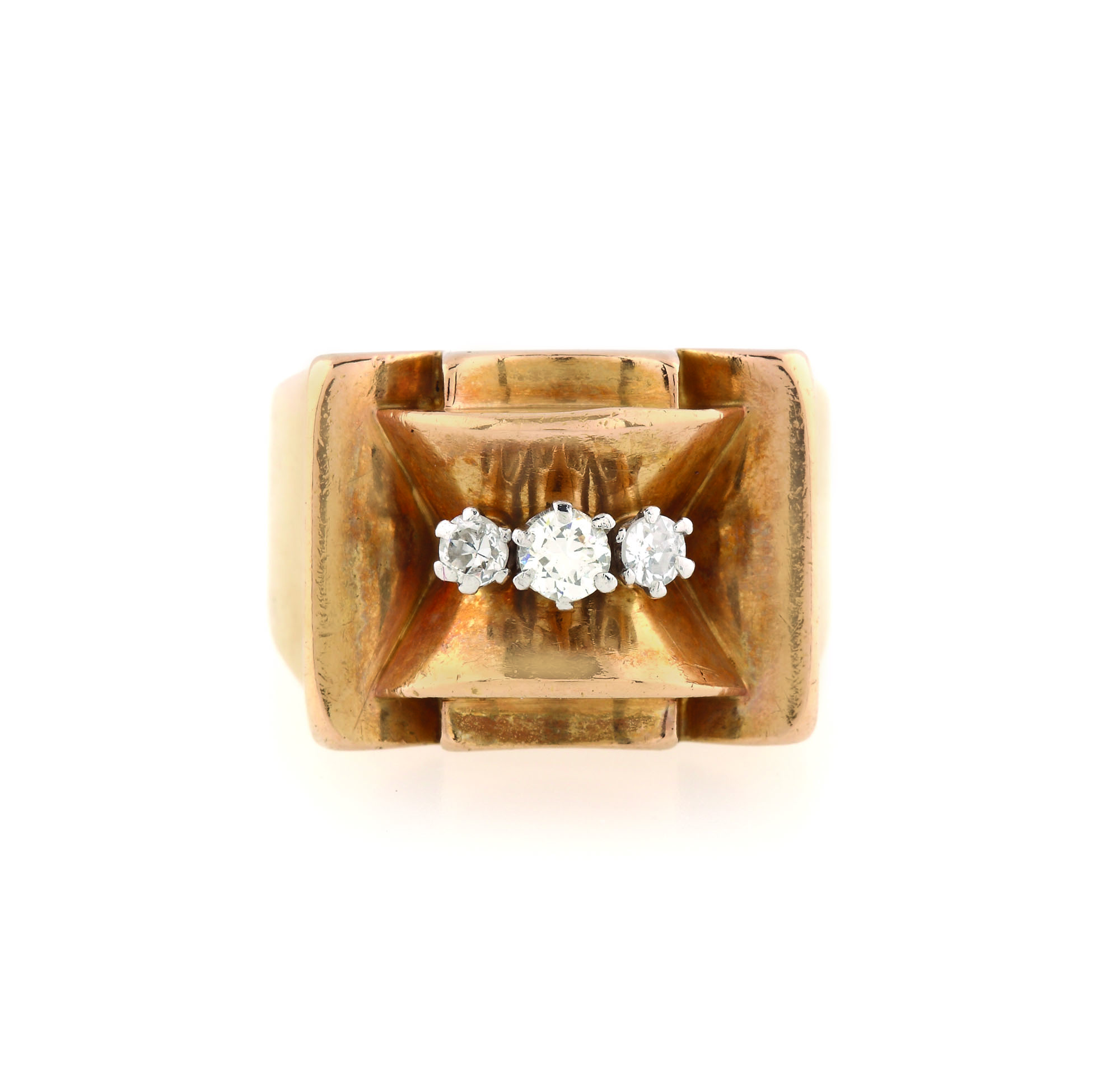 405. Impozant inel Art Deco din aur, ornat cu trei diamante [1950-1960]