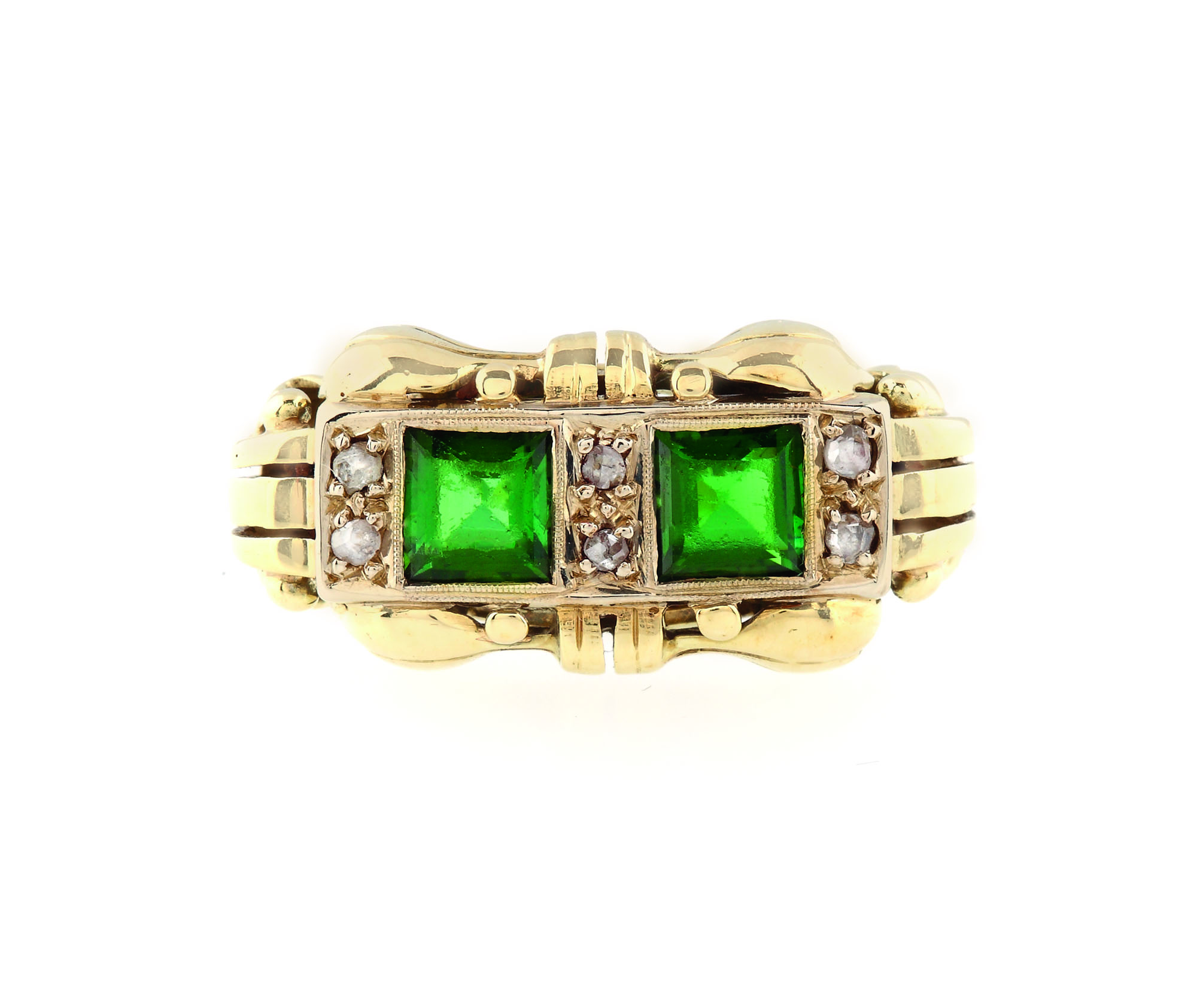 421. Inel Art Deco din aur, ornat cu diamante şi turmaline, executat manual, cca. 1940