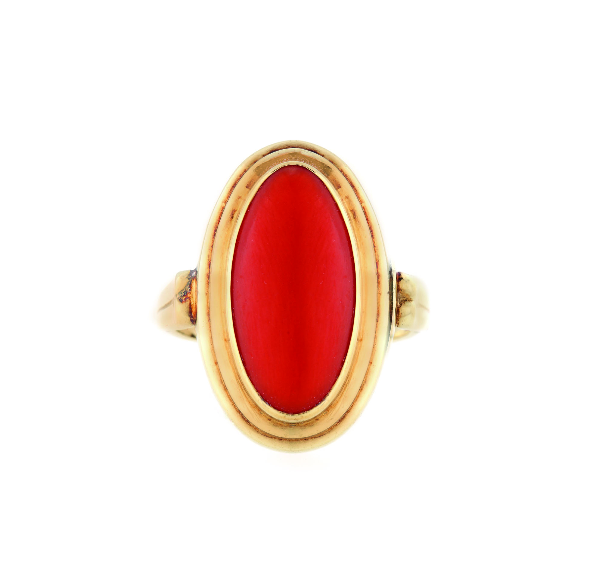 472. Inel din aur, ornat cu coral roşu [1980]