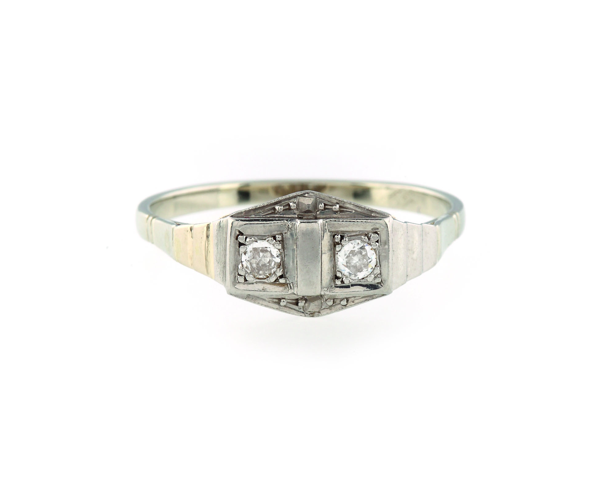 484. Inel în manieră Art Deco, din aur alb, decorat cu diamante