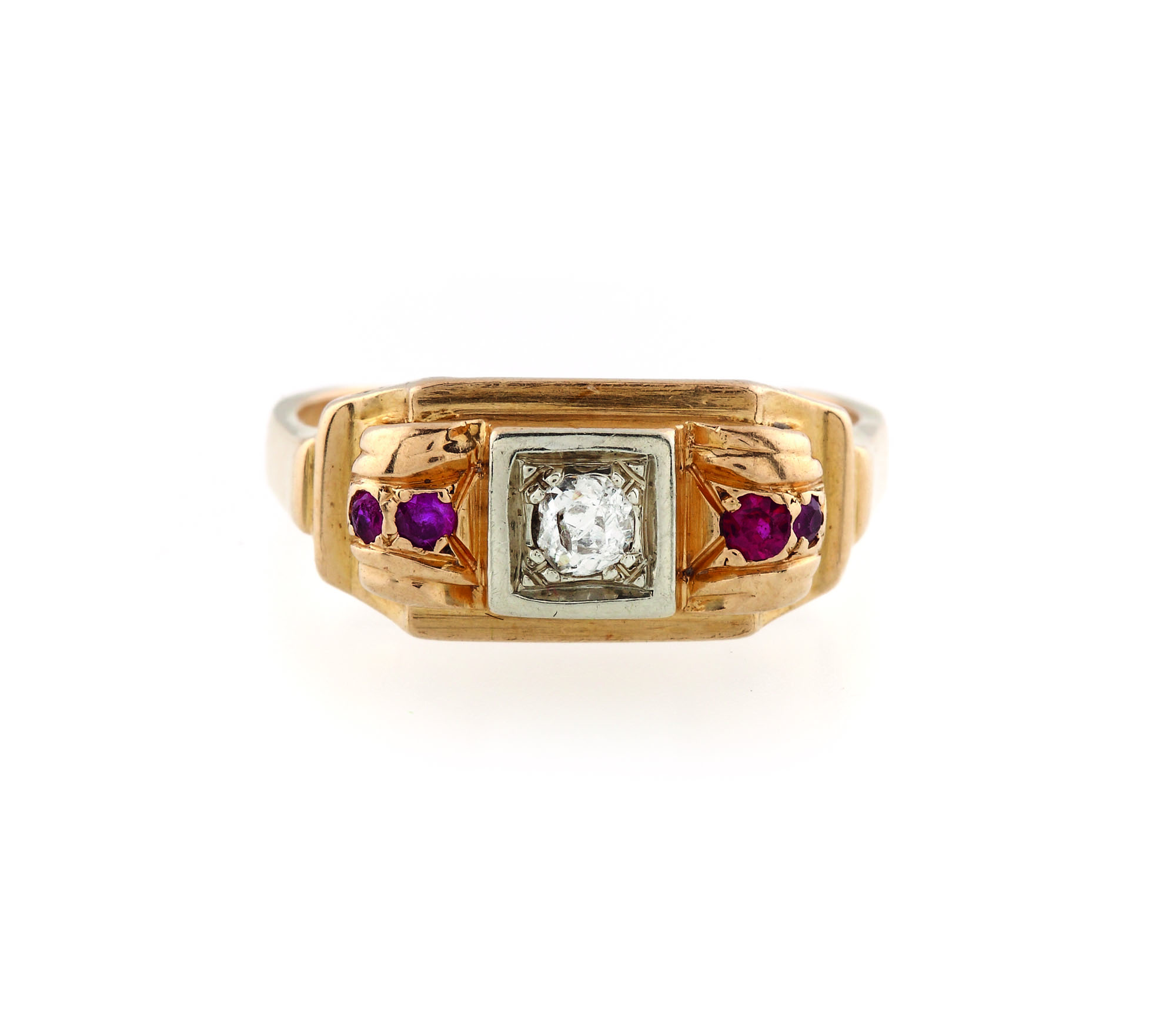 325. Inel în manieră Art Deco, din aur, ornat cu diamant și rubine [Cca. 1960]