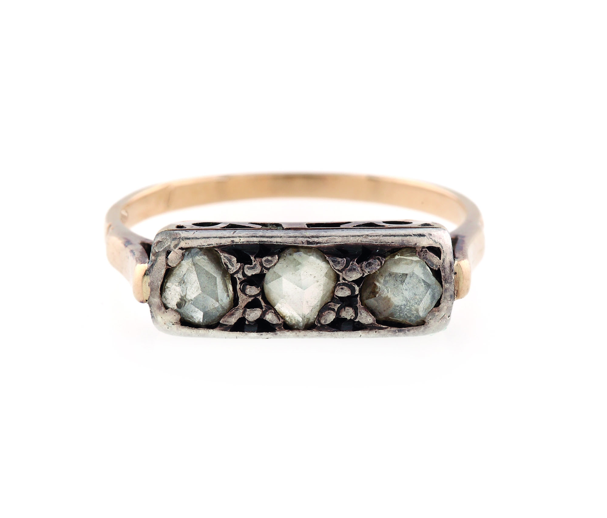 3 diamante rose cut cca. 0,18 ct., culoare O-P, claritate SI-I1; o piatră prezintă fisuri