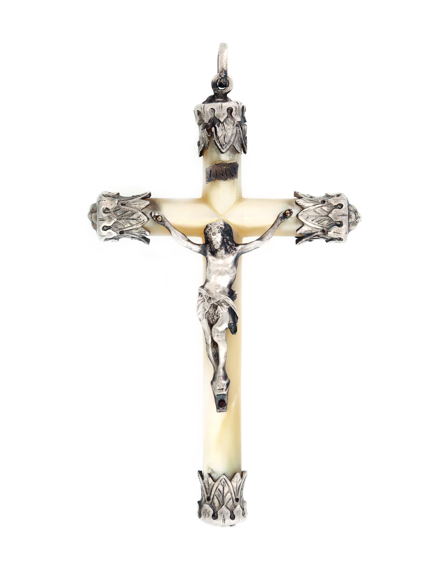 356. Pandantiv-cruce din argint şi sidef, cca. 1840-1860