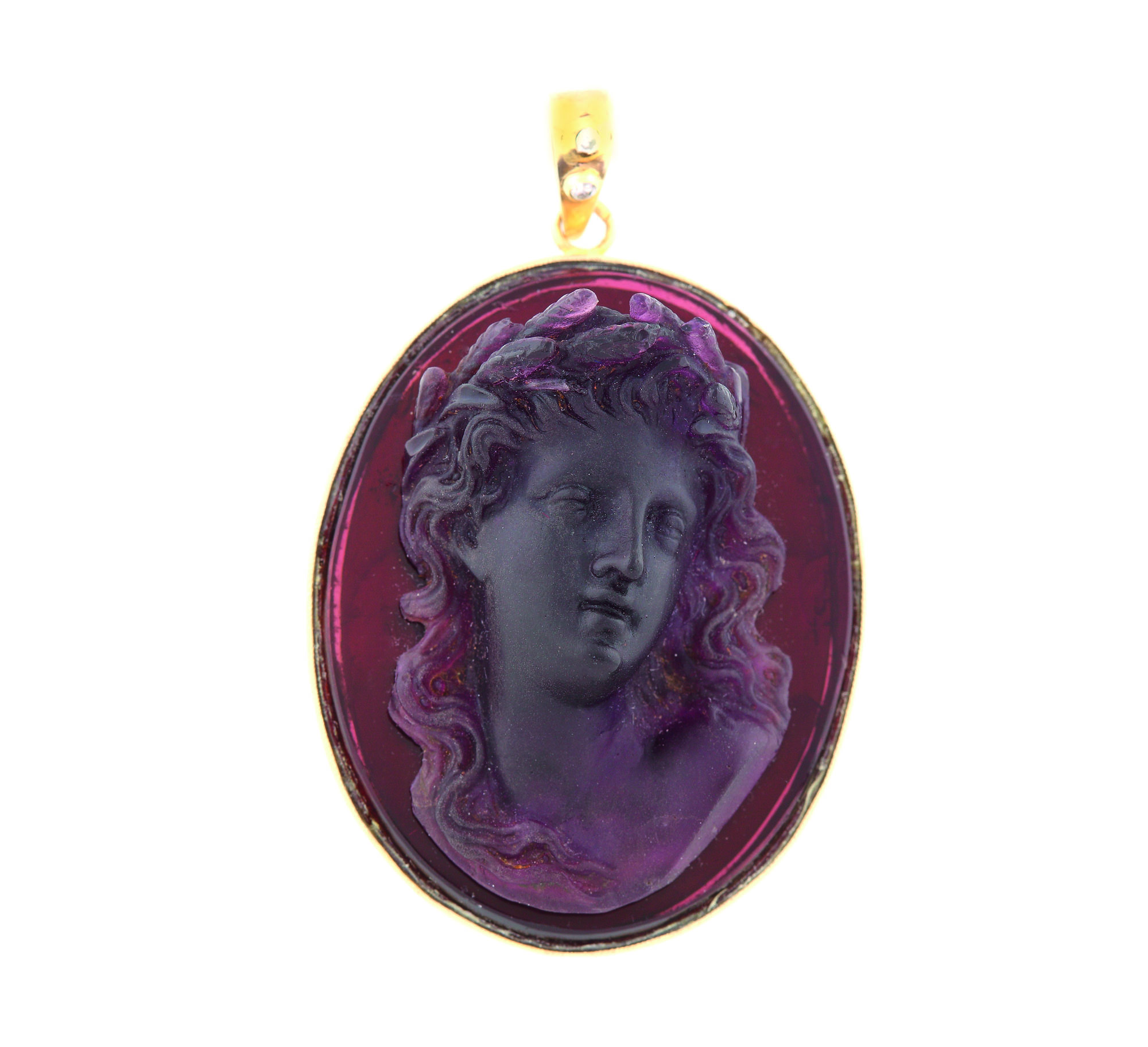 351. Pandantiv din aur, ornat cu chip feminin în relief
