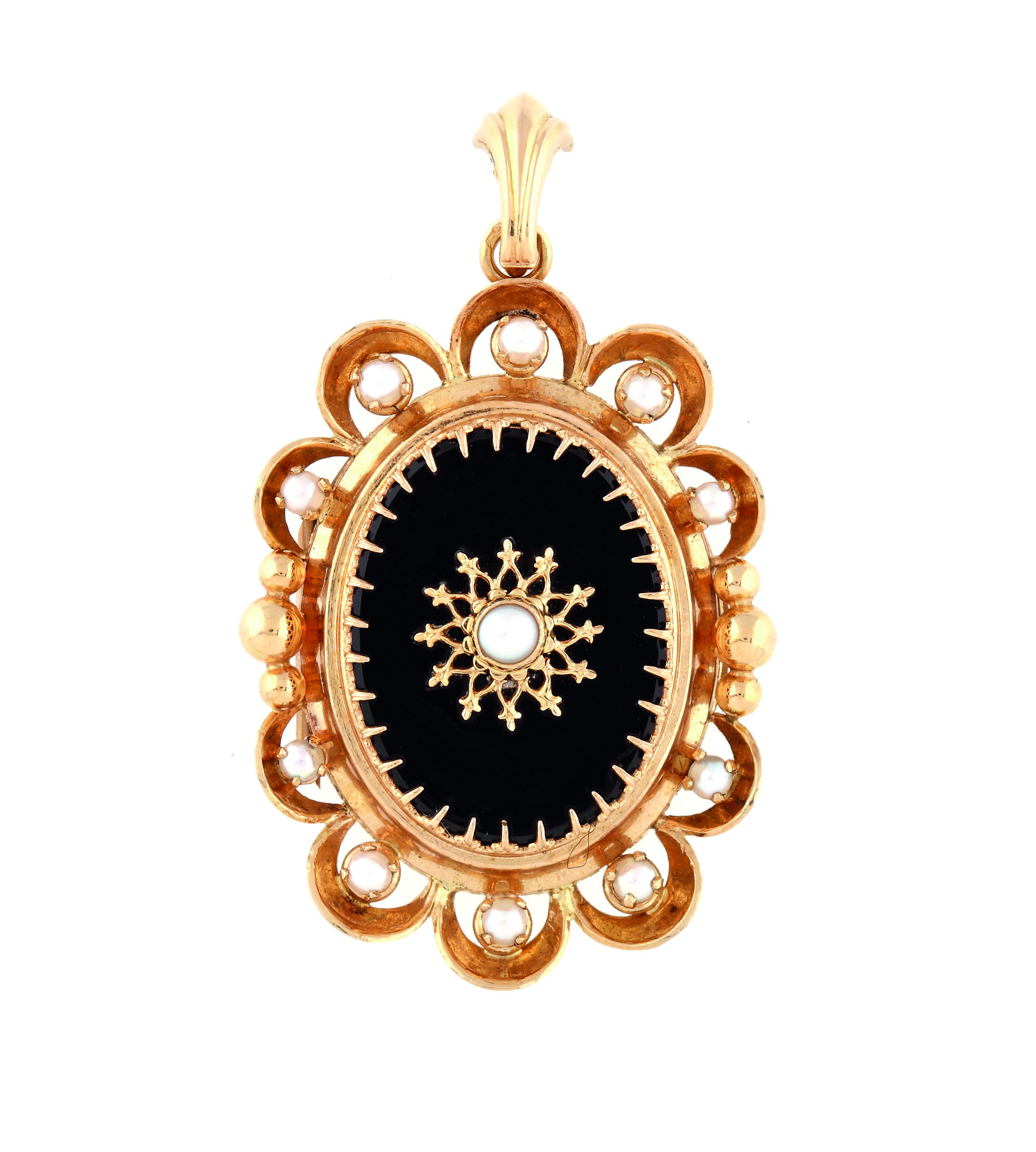 463. Pandantiv-medalion din aur, ornat cu perle si onix [1950]
