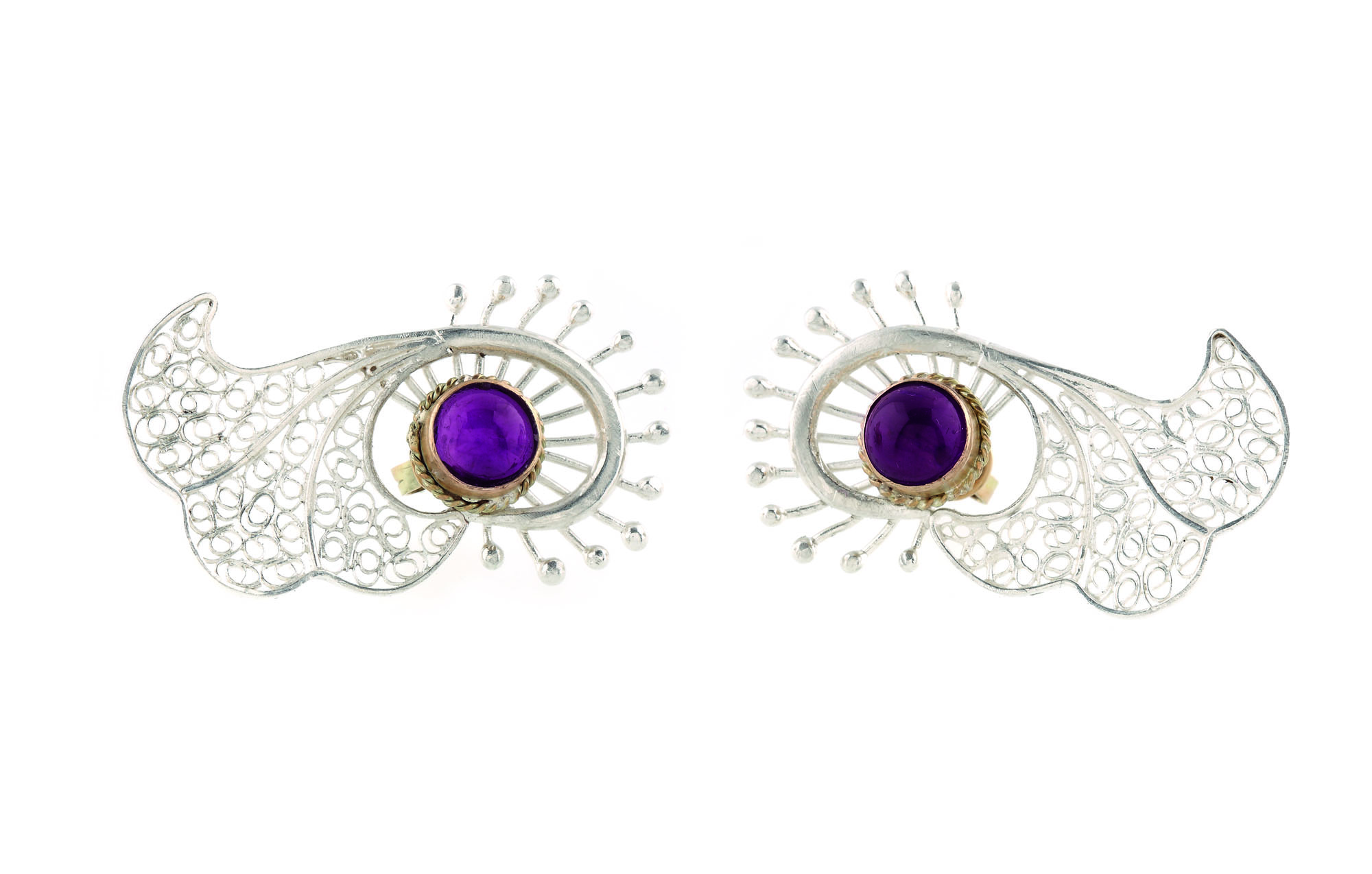 corp: argint 925; tije, fluturaș, montură ametiste: aur galben 14 k
