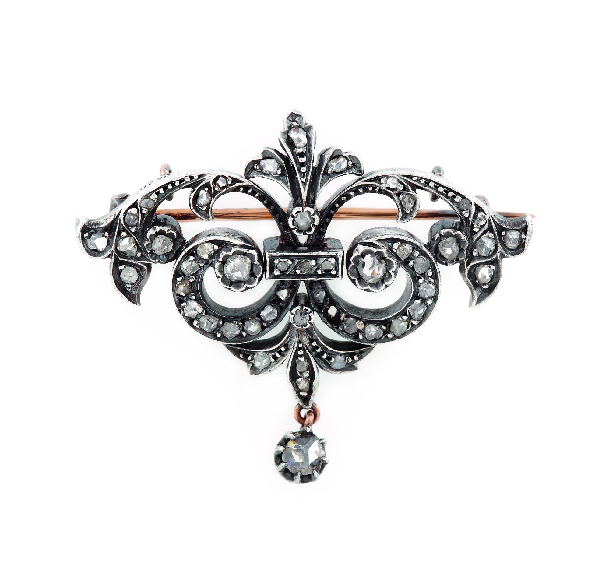 492. Superbă broşă din aur şi argint, decorată cu diamante, cca. 1890-1900