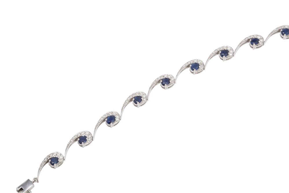39. Brăţară din aur alb, safire şi diamante, în formă de valuri stilizate