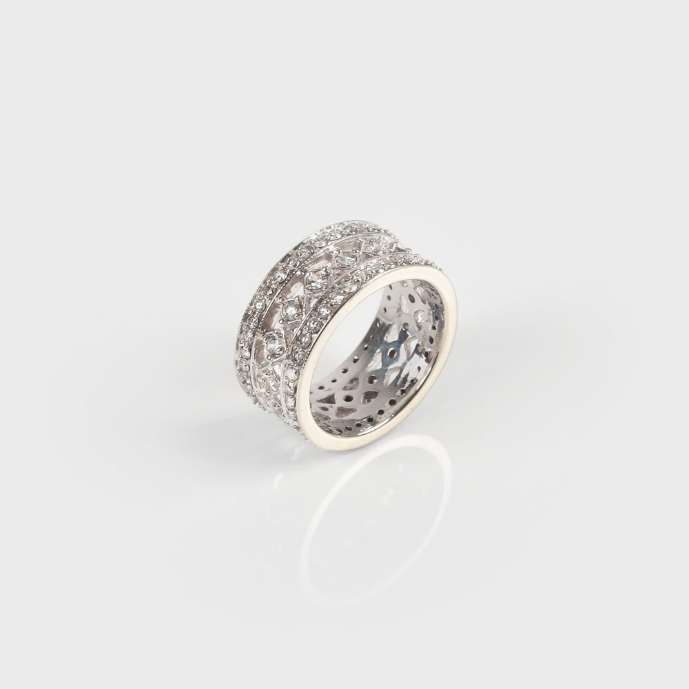 104. Inel-verighetă din aur alb, decorat cu trei rânduri de diamante [Sec. XX]