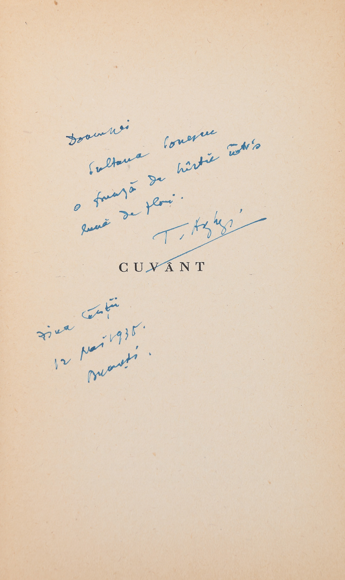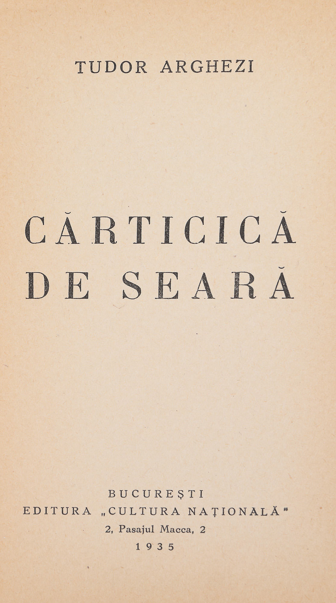 89. ''Cărticică de seară'', de Tudor Arghezi, ediție princeps, București, 1935, cu dedicația autorului către Sultana Ionescu, oferită cu ocazia zilei cărții din 12 mai 1935