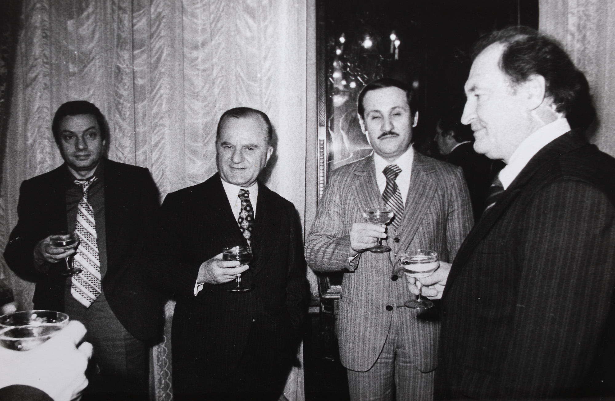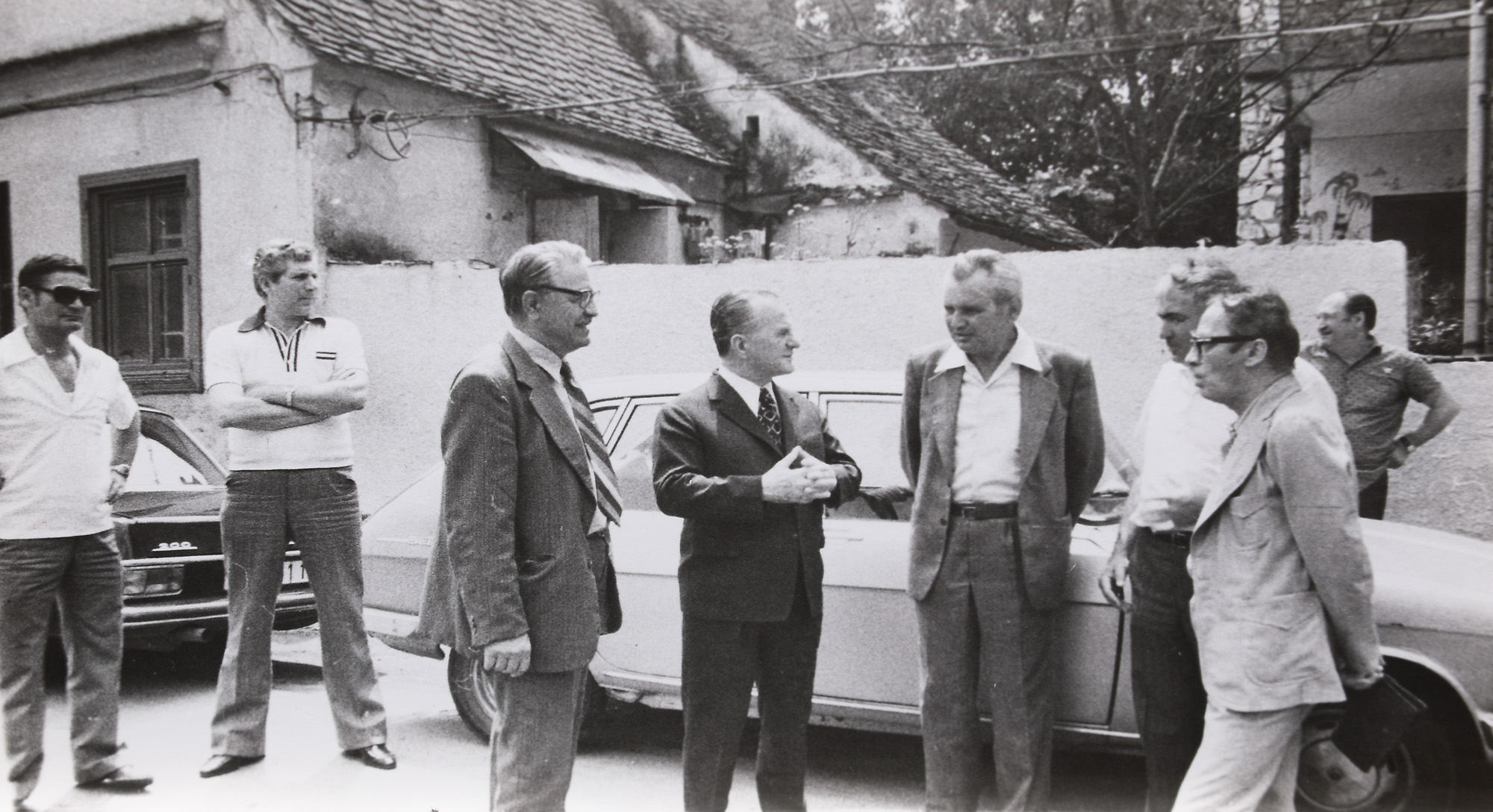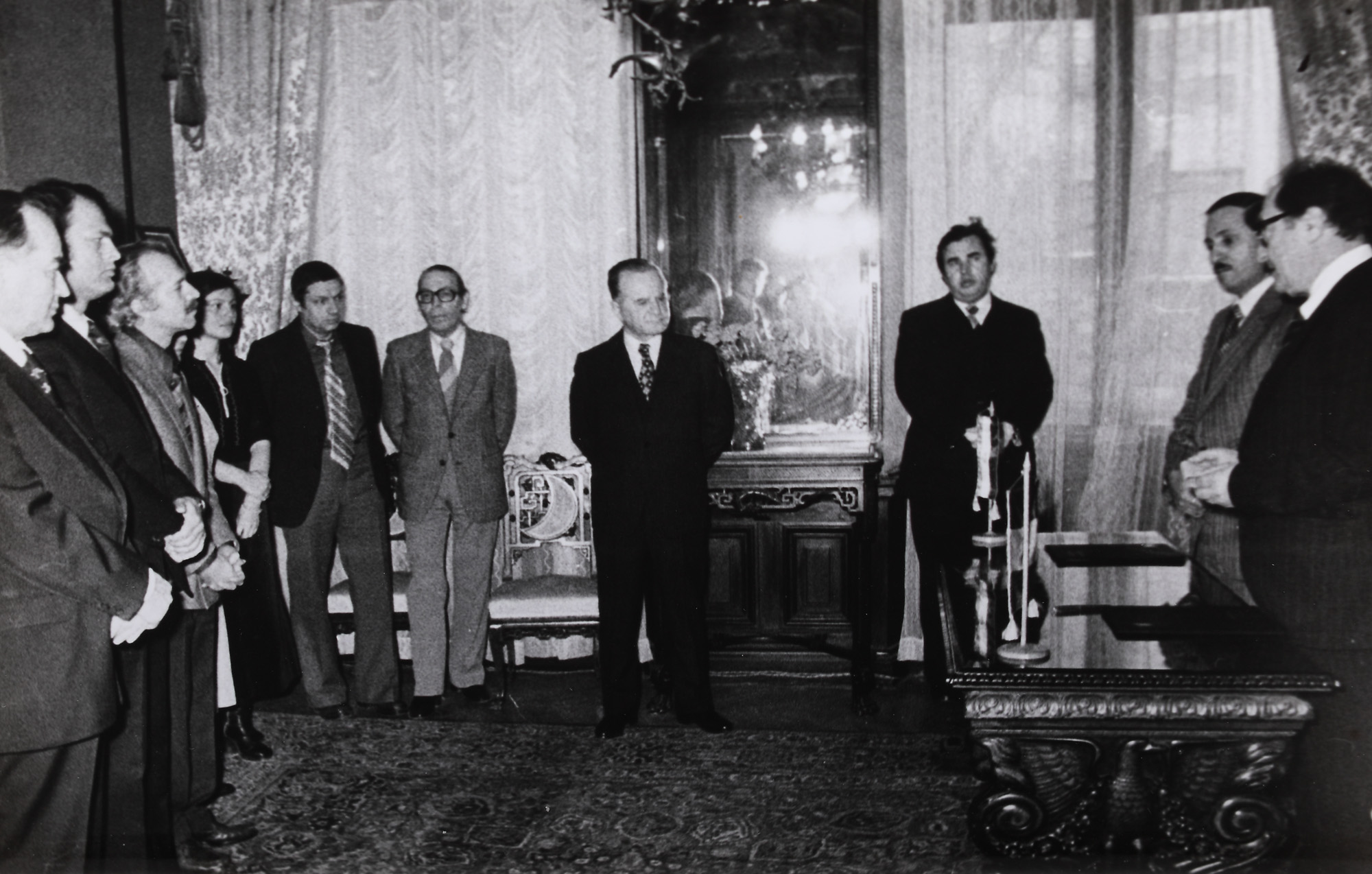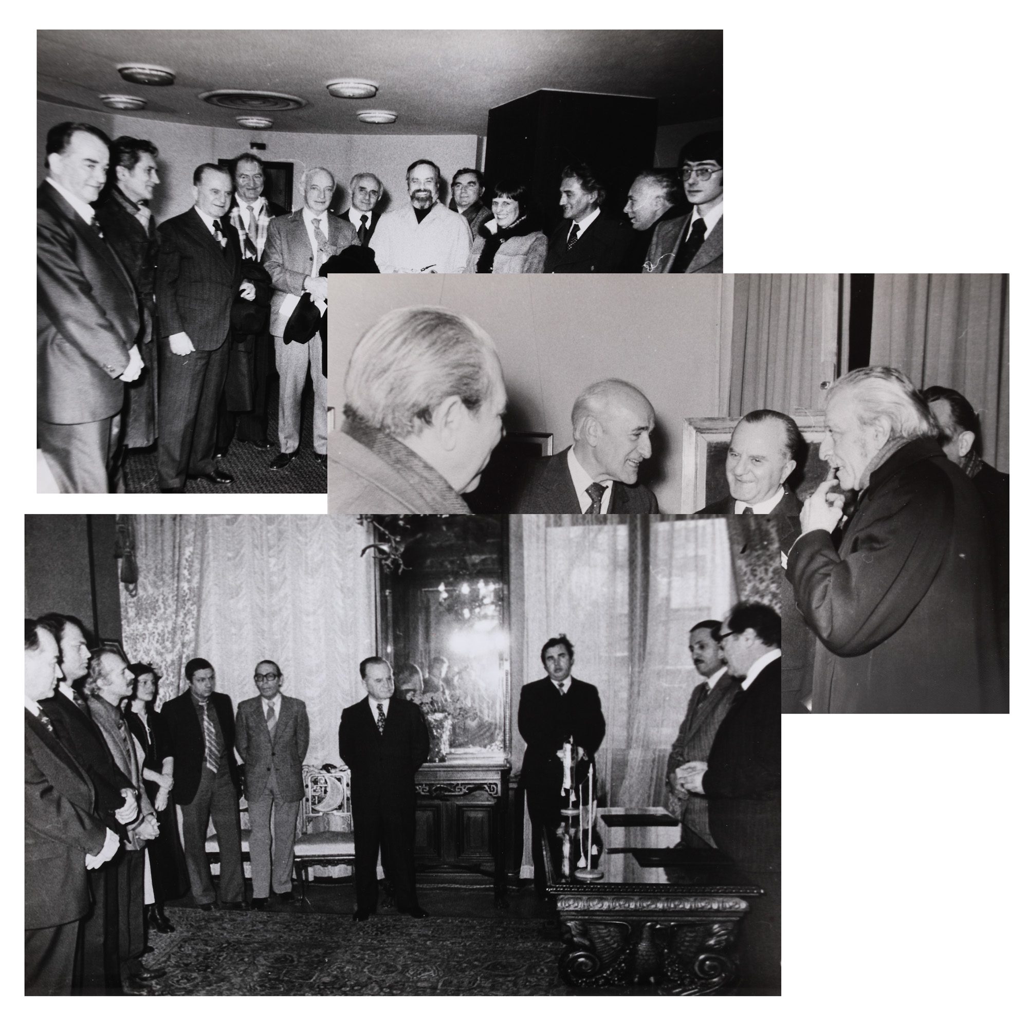 79. Lot format din 13 fotografii iustrându-i pe Marin Preda, Constantin Chiriță, Dumitru Radu Popescu, Mircea Dinescu, George Bălăiță, Traian Iancu, Radu Boureanu, Eugen Jebeleanu, Alexandru Balaci, Catinca Ralea, Saul Bellow, George Macovescu, fotograf C. Mierlescu, București, 1978-1979, provine din colecţia fostului ministru de externe George Macovescu