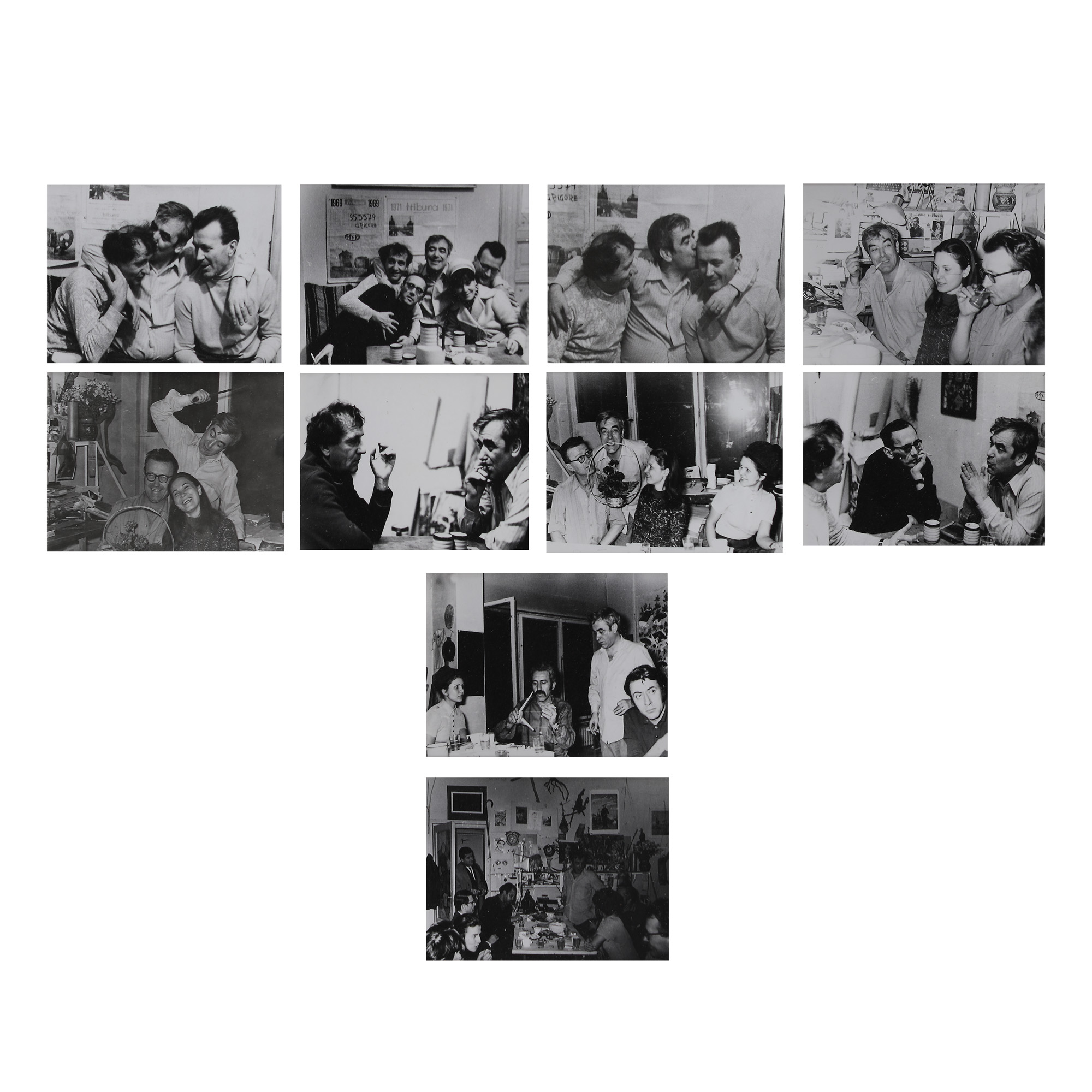 78. Lot format din zece fotografii ilustrându-l pe Constantin Piliuţă în atelier, alături de Ion Minoiu, Constantin Dipșe, Radu Șerban și Ana Maria Piliuță, cca. 1960