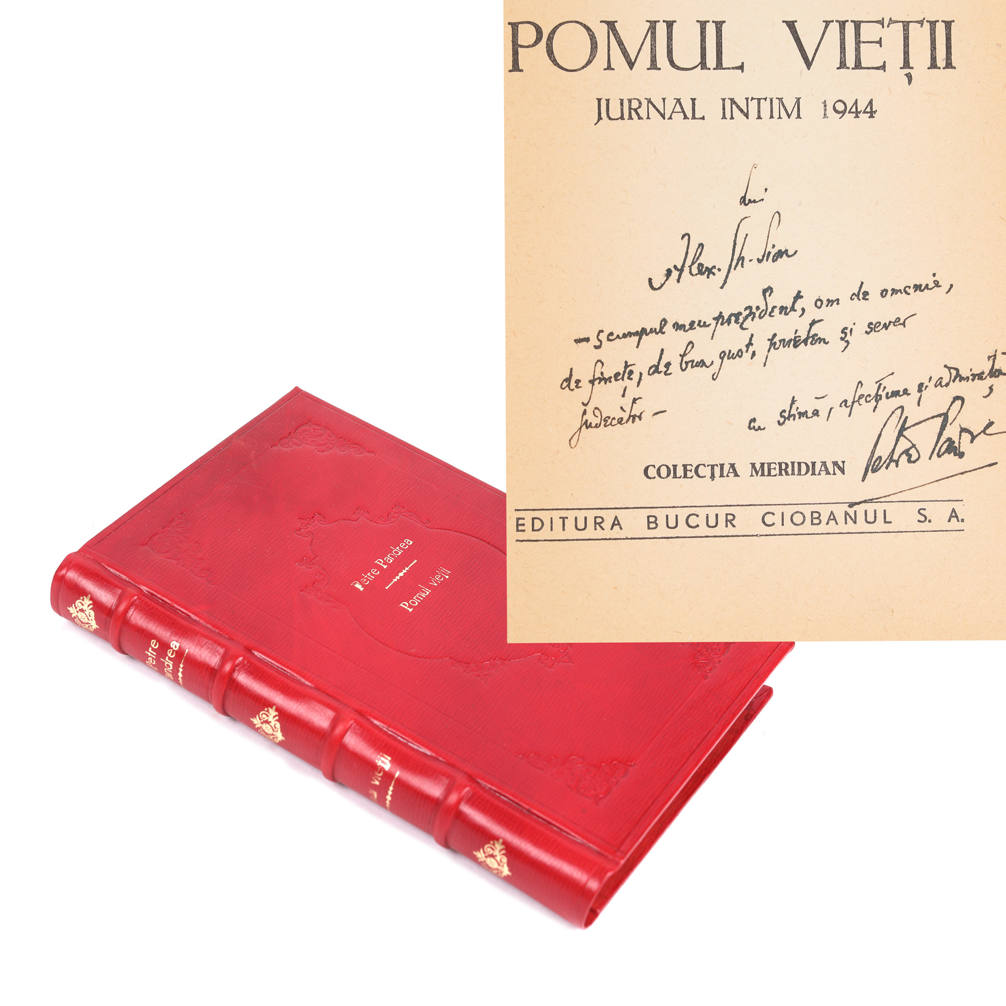 84. ”Pomul vieții. Jurnal intim”, de Petre Pandrea, 1944, cu dedicația și semnătura scriitorului