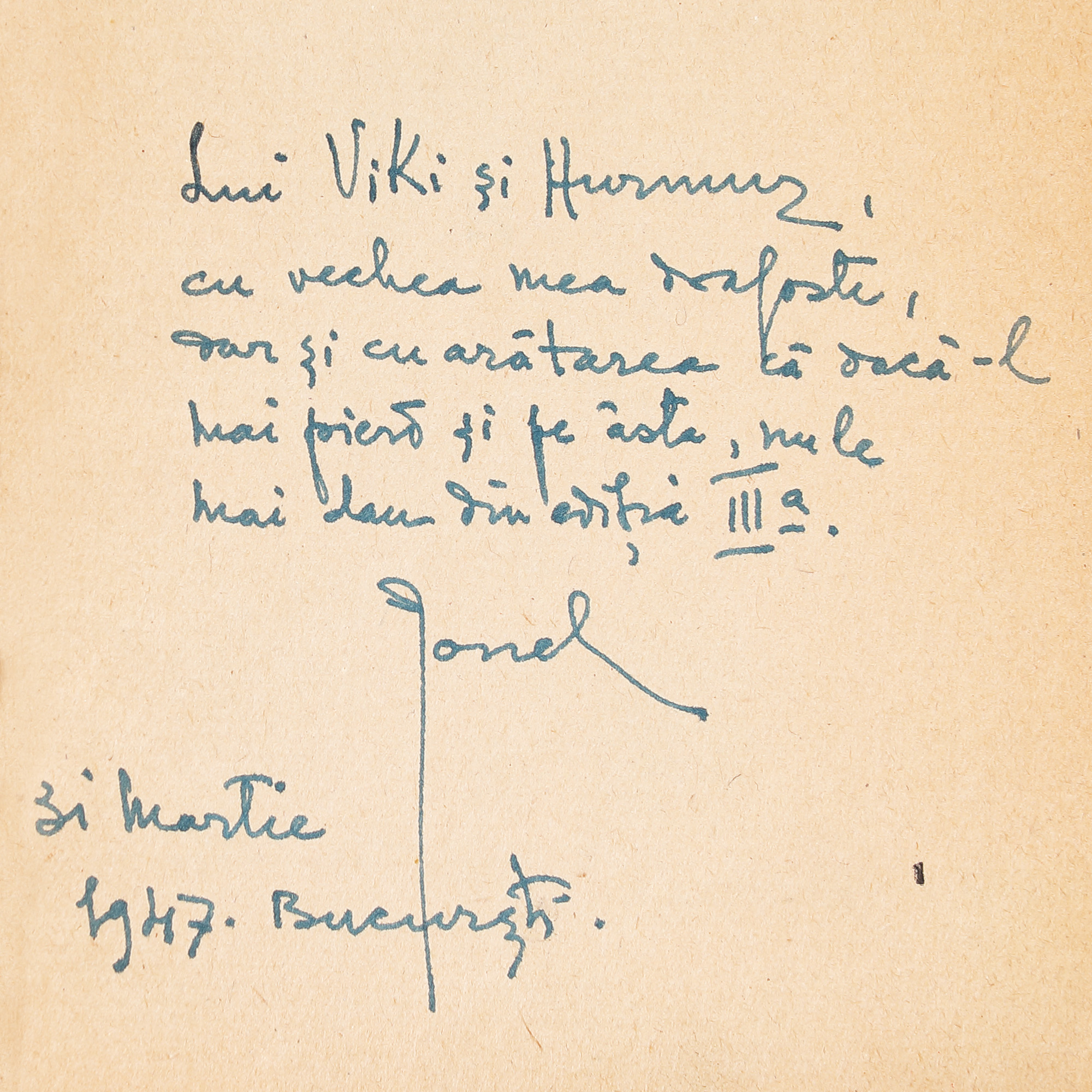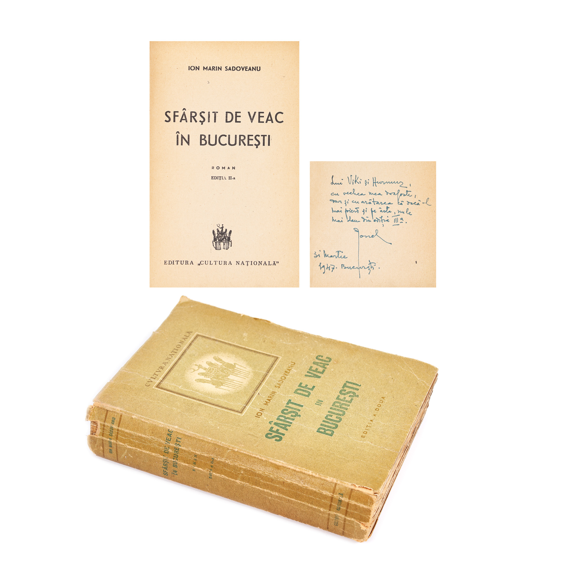 85. ”Sfârșit de veac în București”, de Ion Marin Sadoveanu, 1947, cu dedicația și semnătura olografă a scriitorului