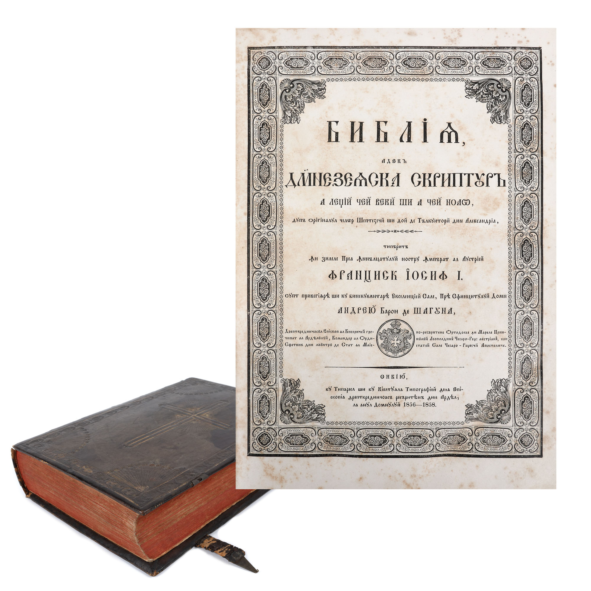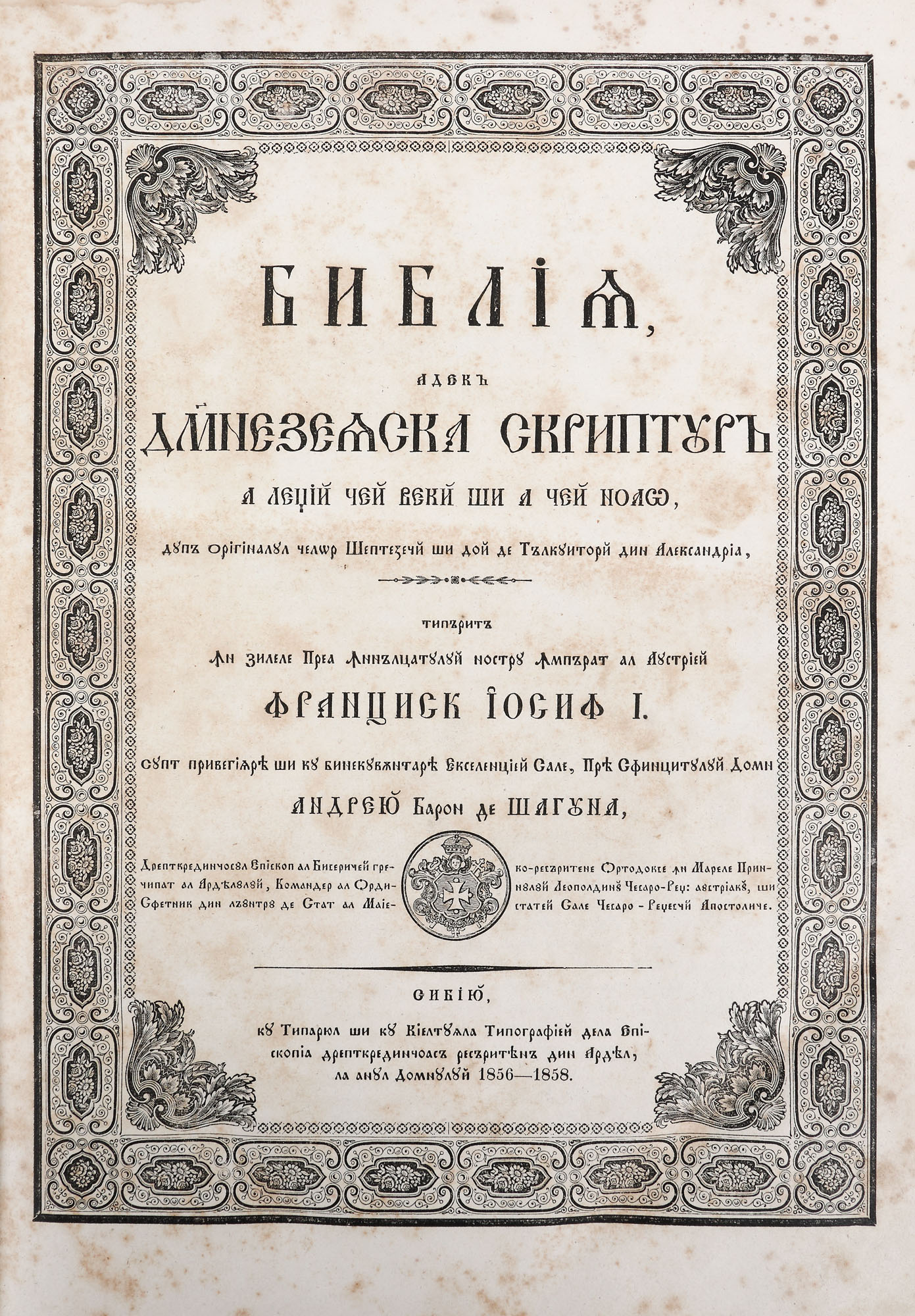 89. ”Biblia, adecă Dumnezeiasca Scriptură”, de Andrei Șaguna, mitropolit ortodox al Ardealului, Sibiu, 1856-1858