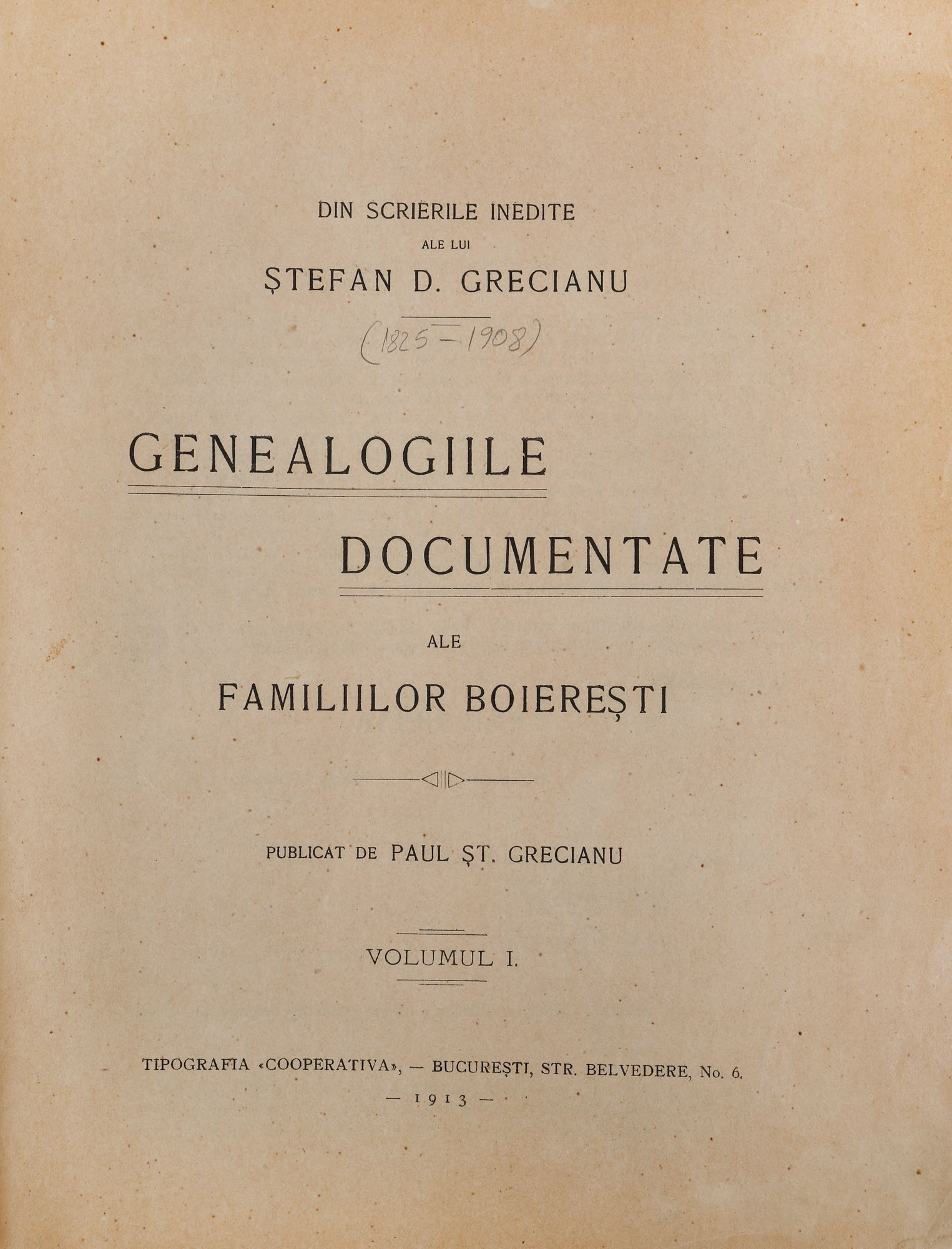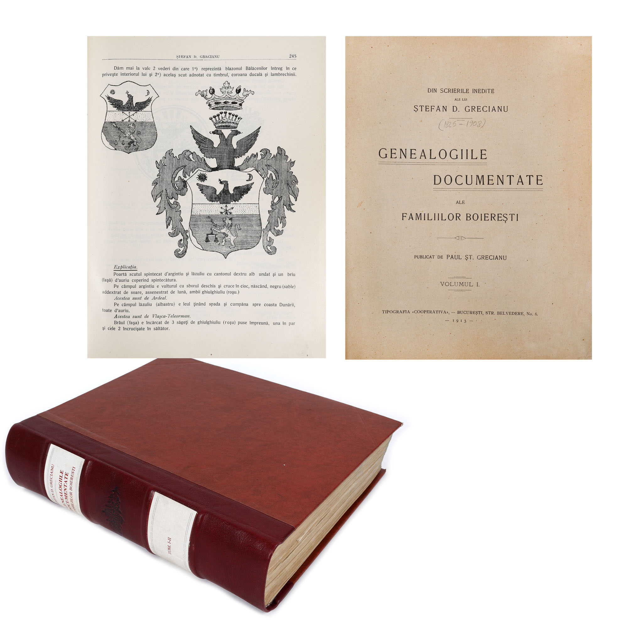 70. Colegat de două volume ”Genealogiile documentate ale familiilor boiereşti”, de Ștefan Grecianu, București, 1913-1916