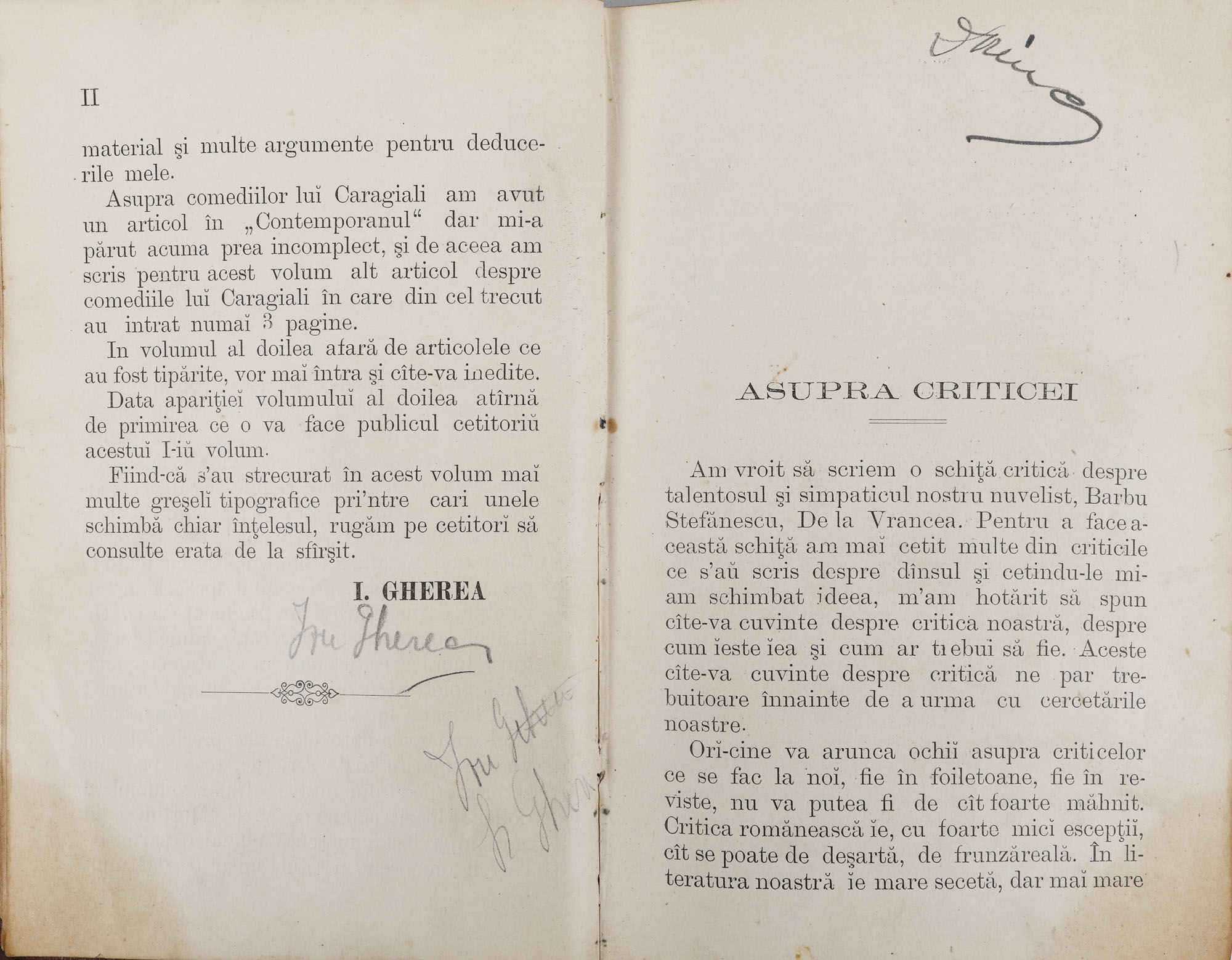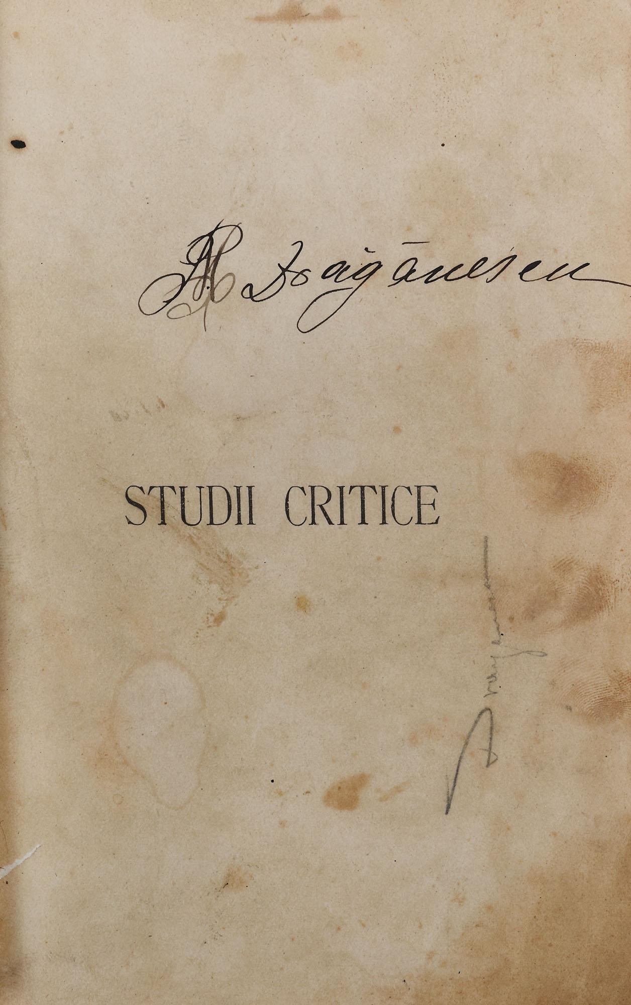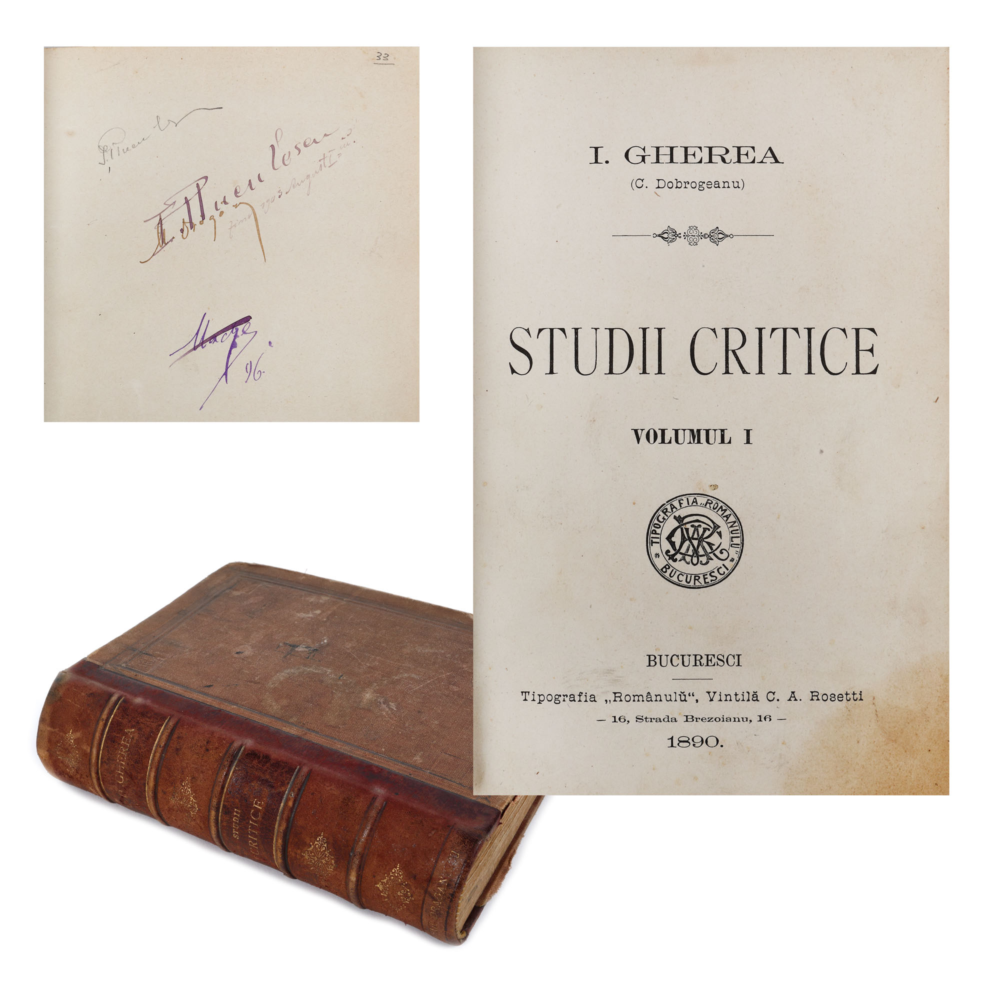 150. Colegat ”Studii critice” și ”Asupra criticei metafizice si celei stiințifice”, de Constantin Dobrogeanu Gherea, București, 1890, cu ex-libris Ion P. Țuculescu, provine din colecția istorică Șerban Țuculescu-Maria Galaction
