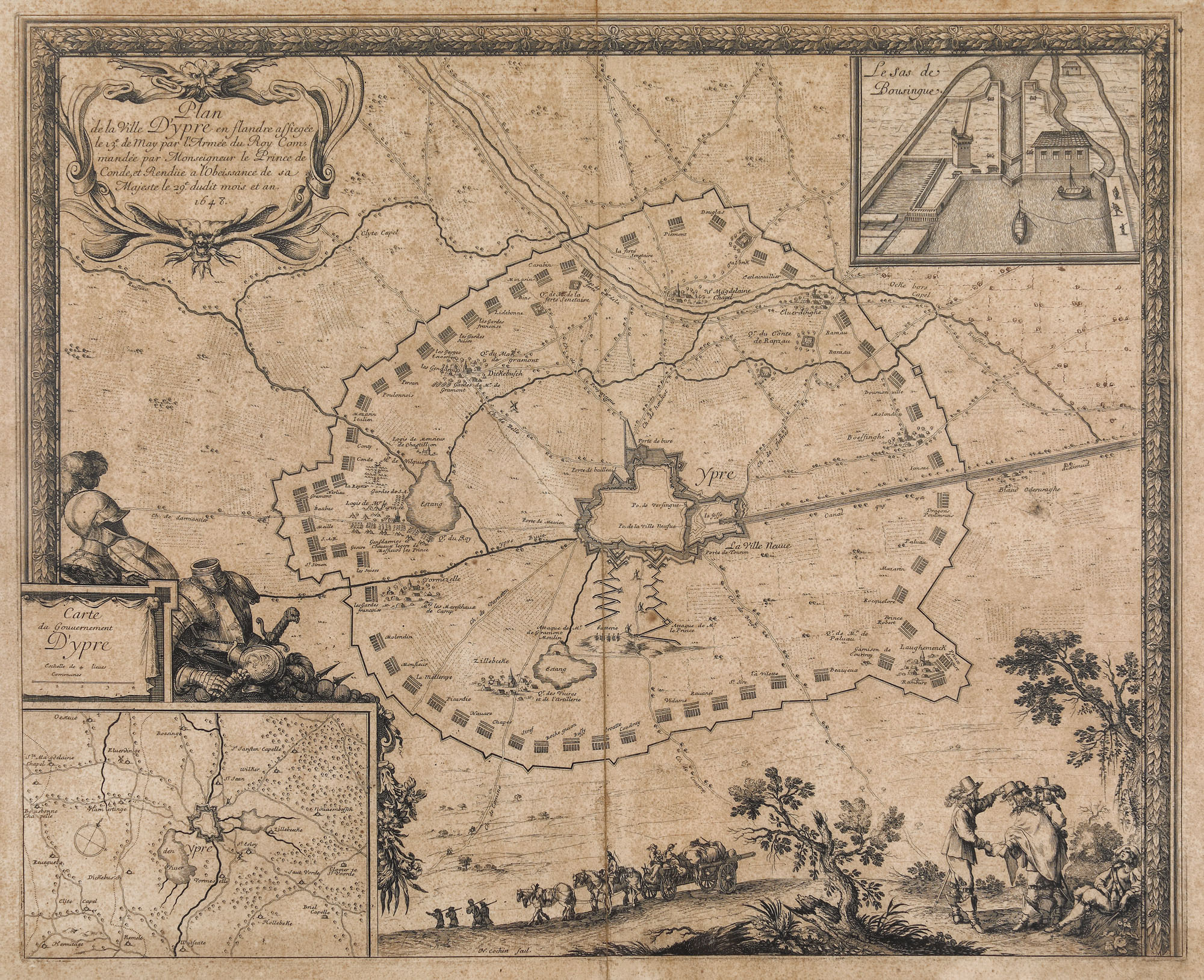 141. Hartă orașului Ypre, Flandra, la 13 mai 1648 când Louis al II-lea de Bourbon, al Casei Condé, îl asediază, provine din colecția prințului Ghica