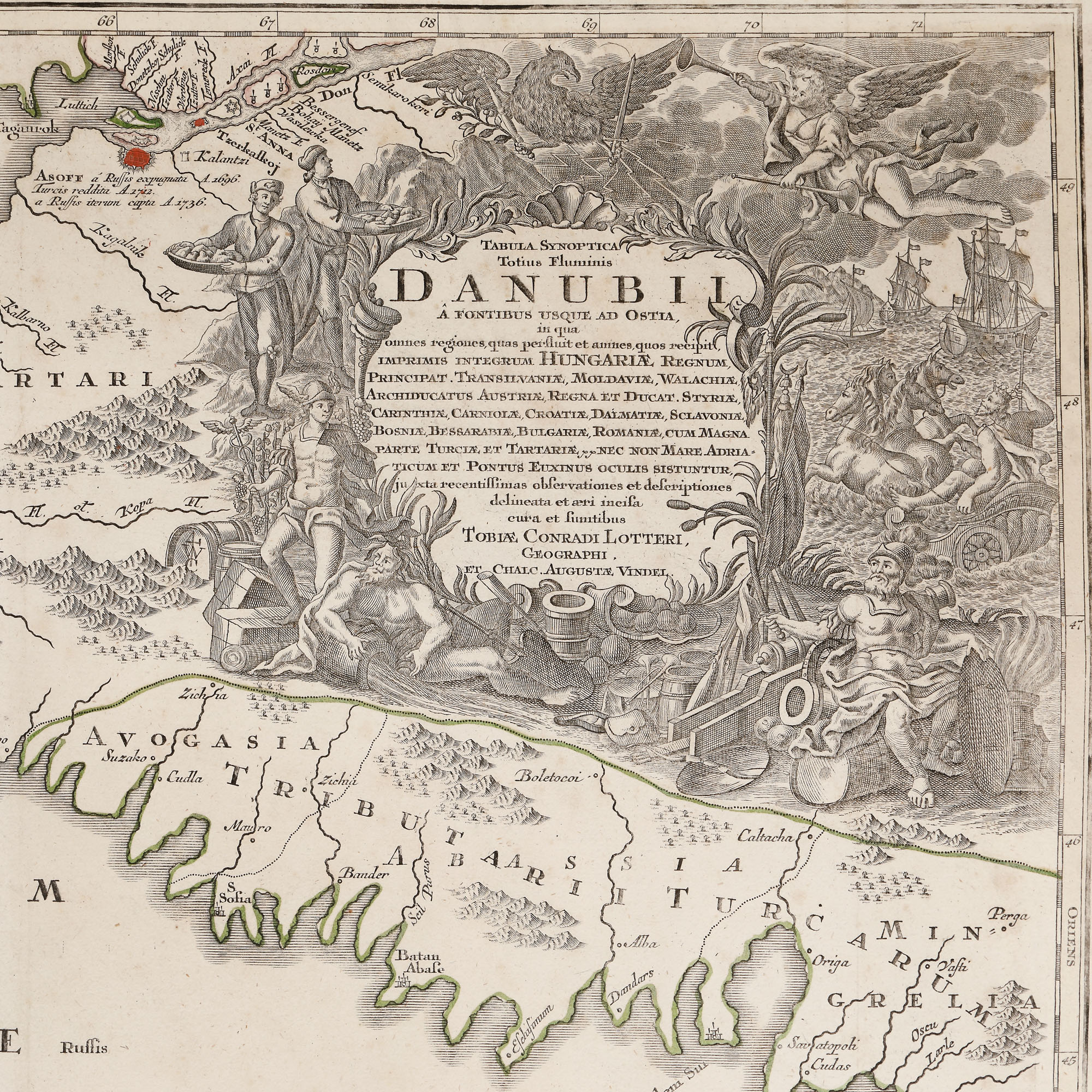 99. Hartă sinoptică ”Cursul și Delta Dunării”, de Lotter Tobias Conrad, Augsburg, cca. 1740