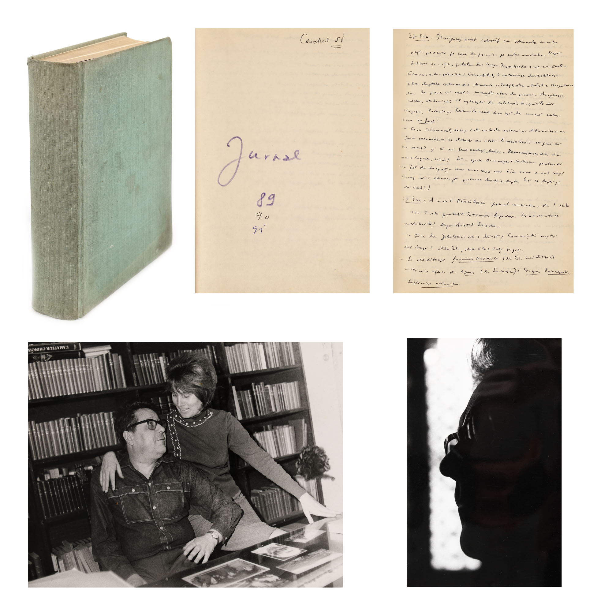 55A. Jurnal ”Revoluția are urmări!” al scriitorului Eugen Barbu, 1989-1991 și două fotografii ilustrându-i pe Marga și Eugen Barbu realizate de fotograful Ion Miclea, raritate absolută, provin din colecția Marga și Eugen Barbu