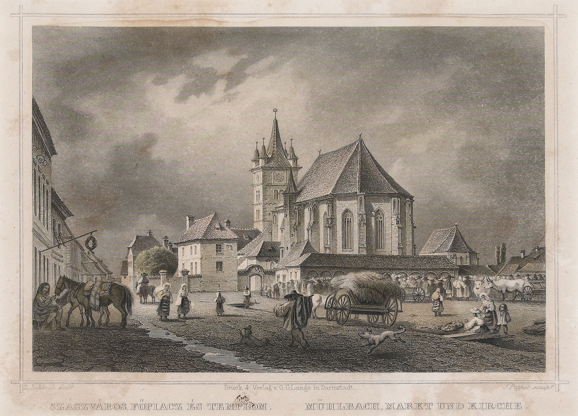 132. Litografie ”Piața și biserica din Orăștie”, Darmstadt, sfârșitul sec. XIX