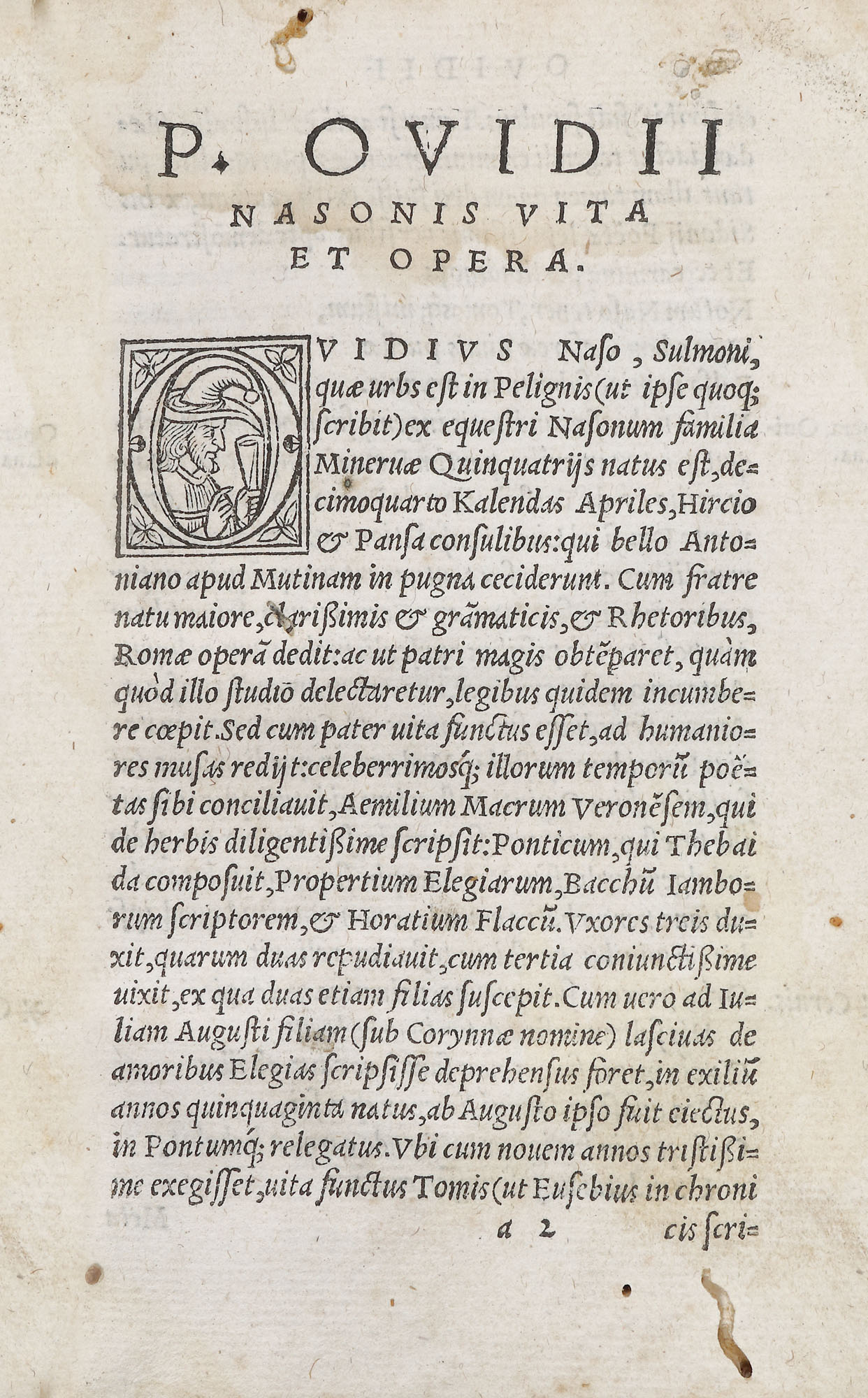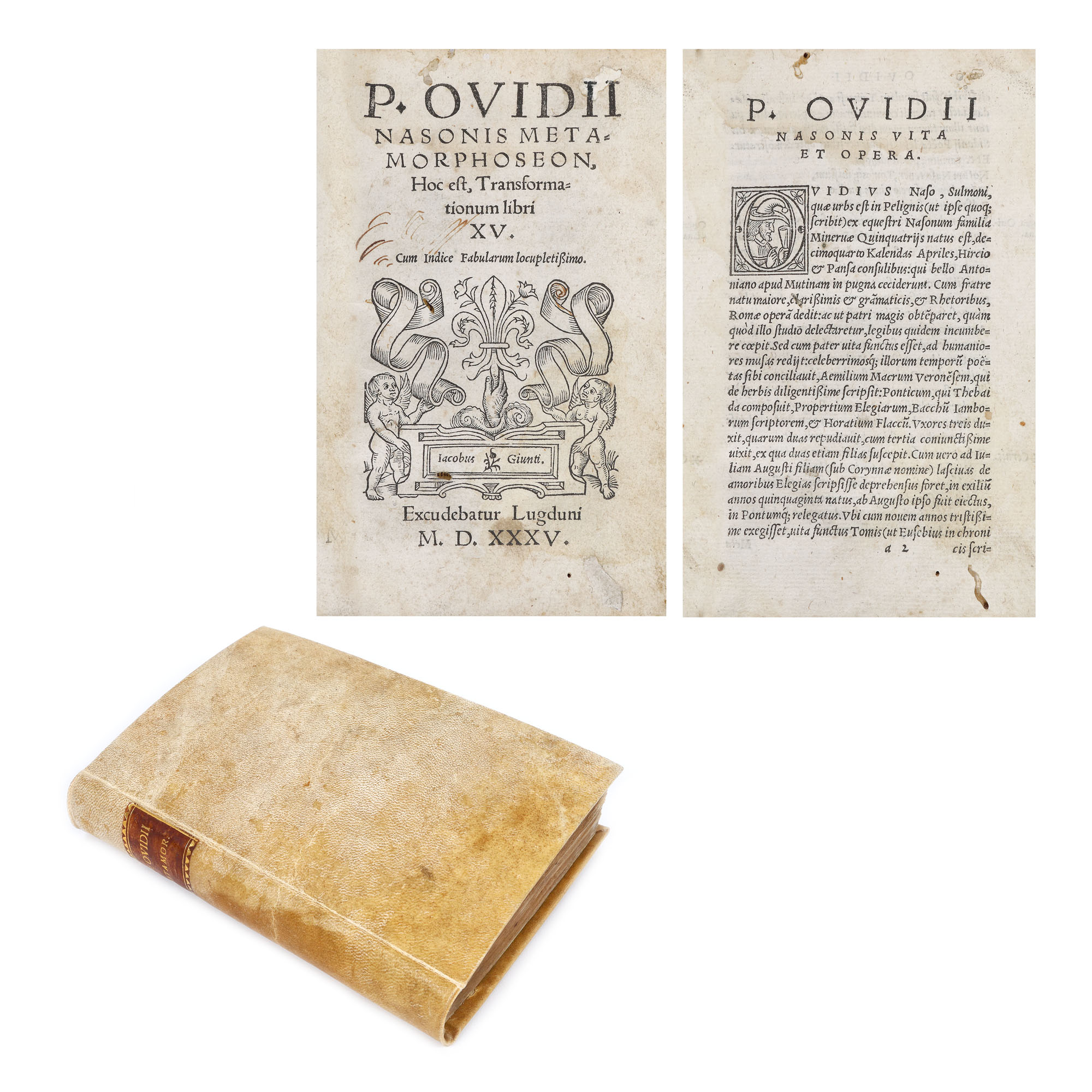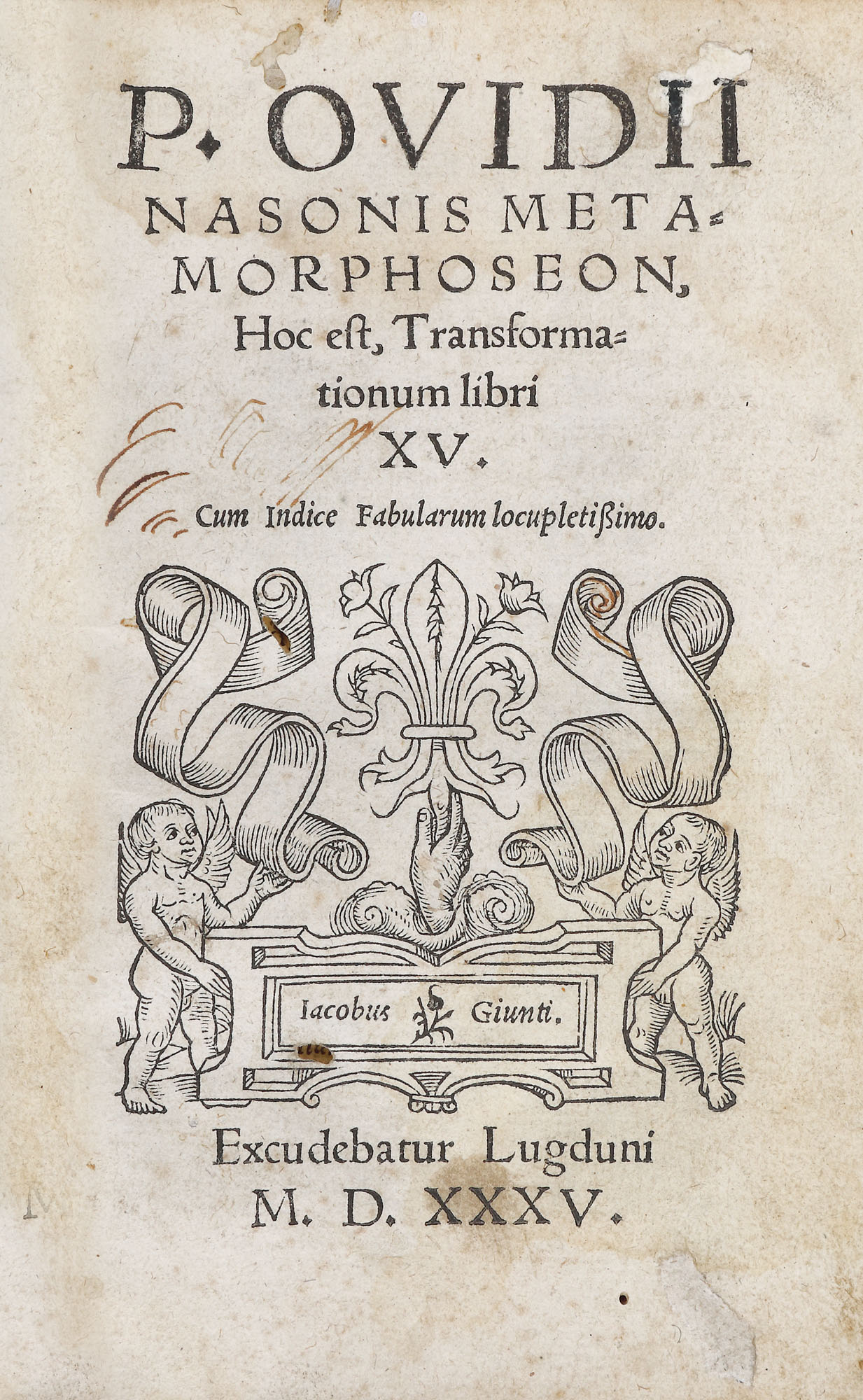 Metamorfoze (Metamorphoses) este una dintre capodoperele poetului latin Publius Ovidius Naso. Este un lung poem epic în hexametri, aici fiind prelucrate 250 de legende (extrase din Homer, Hesiod, Titus Livius, Vergilius) despre transformările cunoscute în lume, începând cu crearea universului și până la apoteoza lui Cezar. Format in 8º, cu 18 file nenumerotate si 423 pagini numerotate. Volumul a fost tipărit la Lugdunum (Lyon), în celebra editură Iacobus Giunti, în limba latină, cu puține elemente tipografice decorative: inițiale florale. Legătură din pergament, lipit pe carton, pe cotor este menționat titlul și autorul.