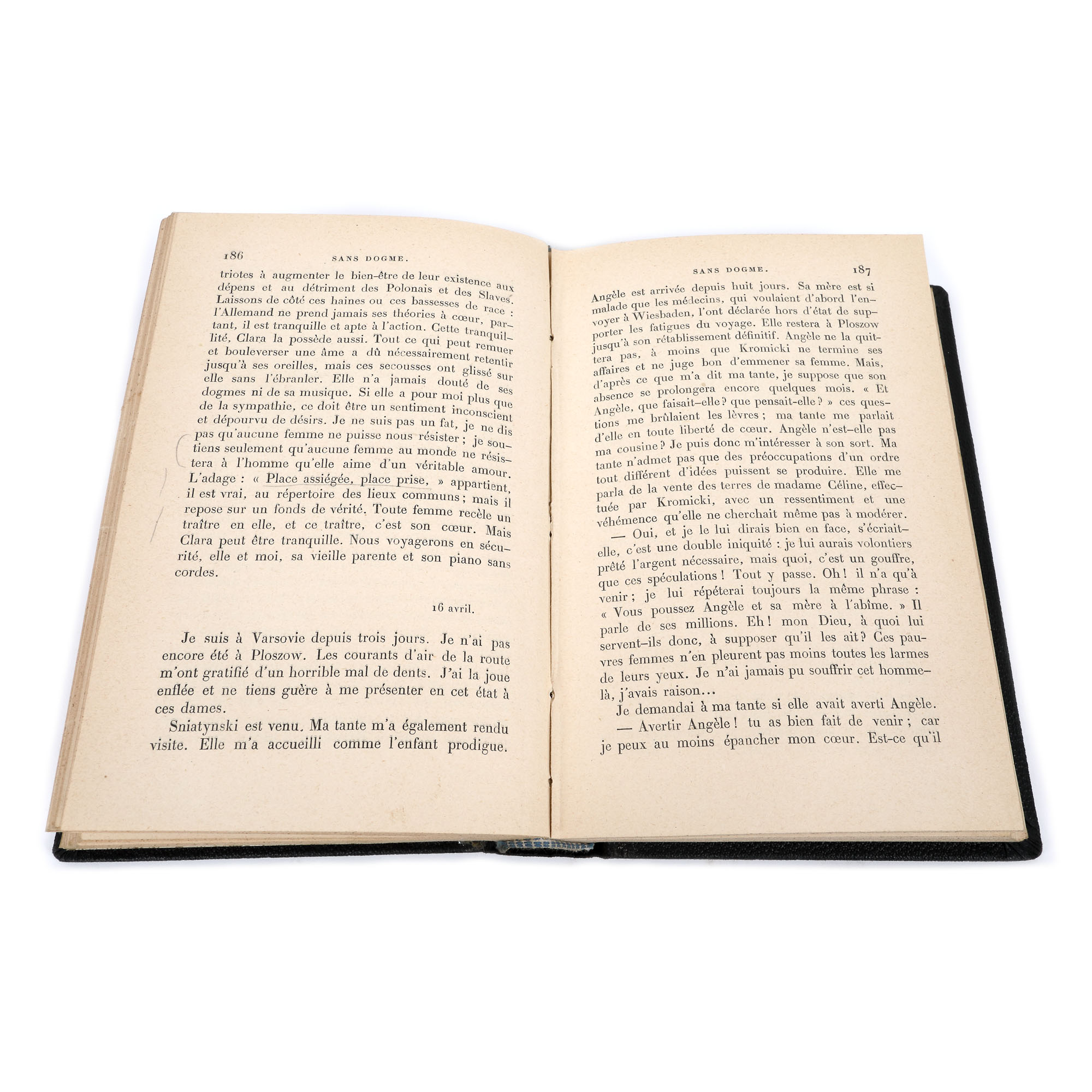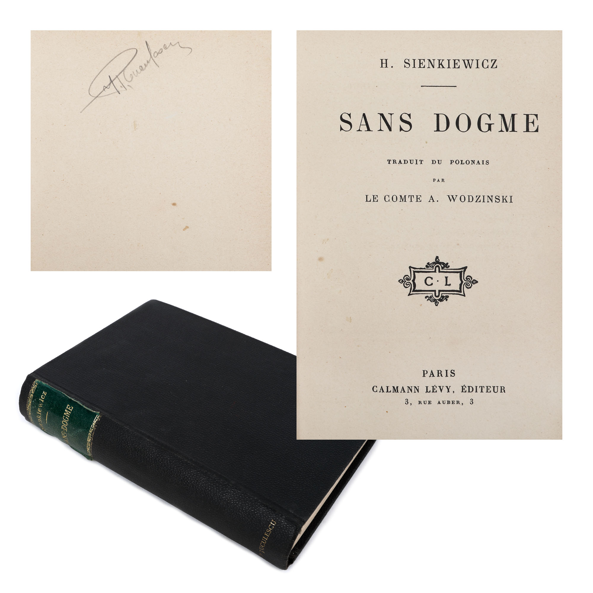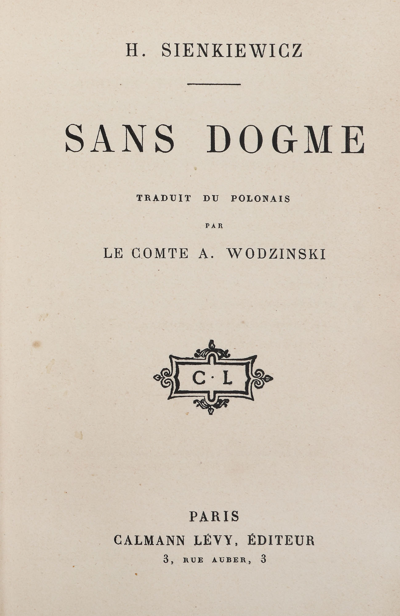 161. ”Sans Dogme”, de Henryk Sienkiewicz, tradusă de Antoni Wodzinski, franceză, Pairs, 1985, cu ex-libris Ion P. Țuculescu, provine din colecția istorică Șerban Țuculescu-Maria Galaction
