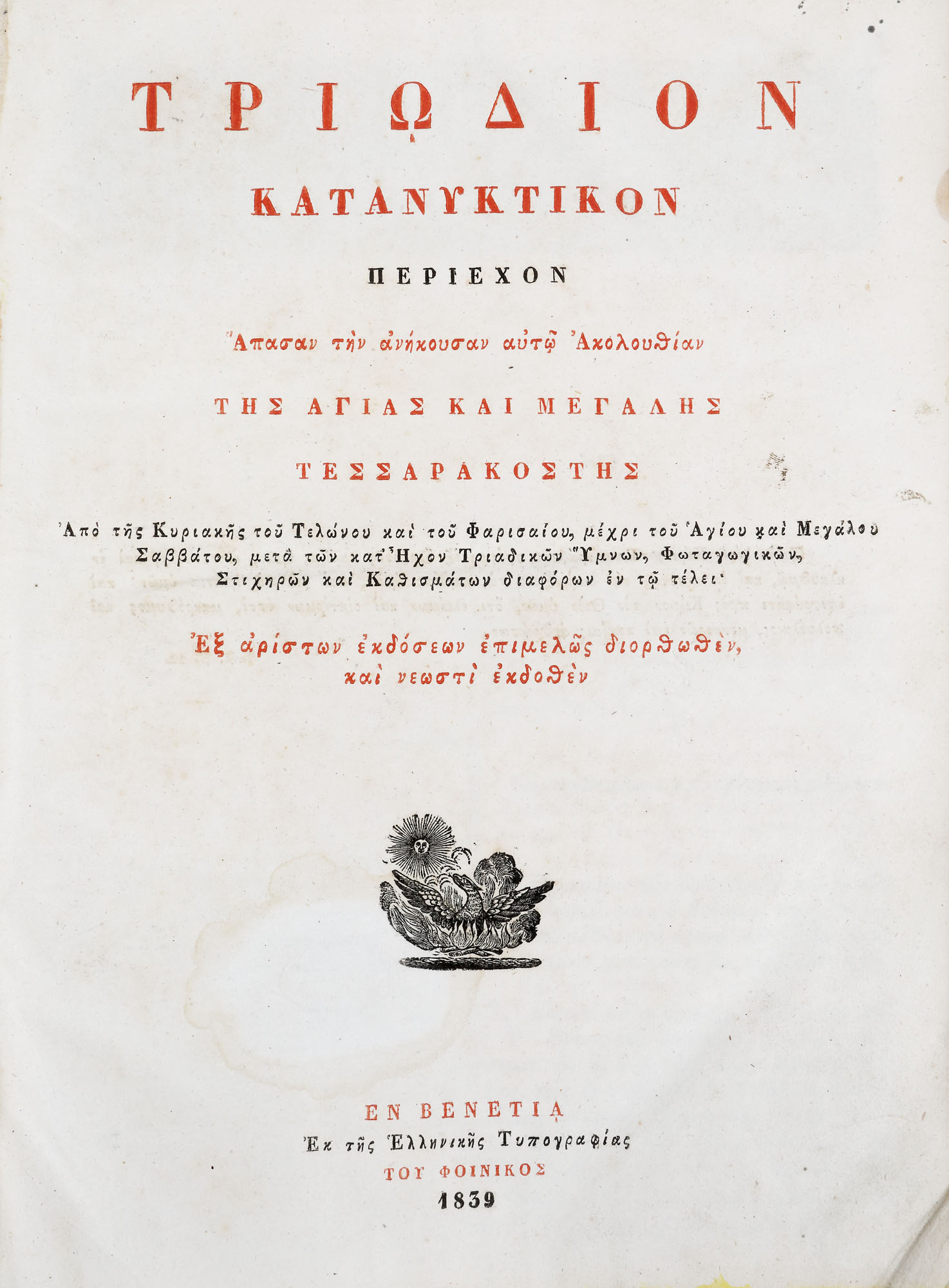 164. ”Triodion” - Îndreptar pentru postul mare, greacă, Veneția, 1839