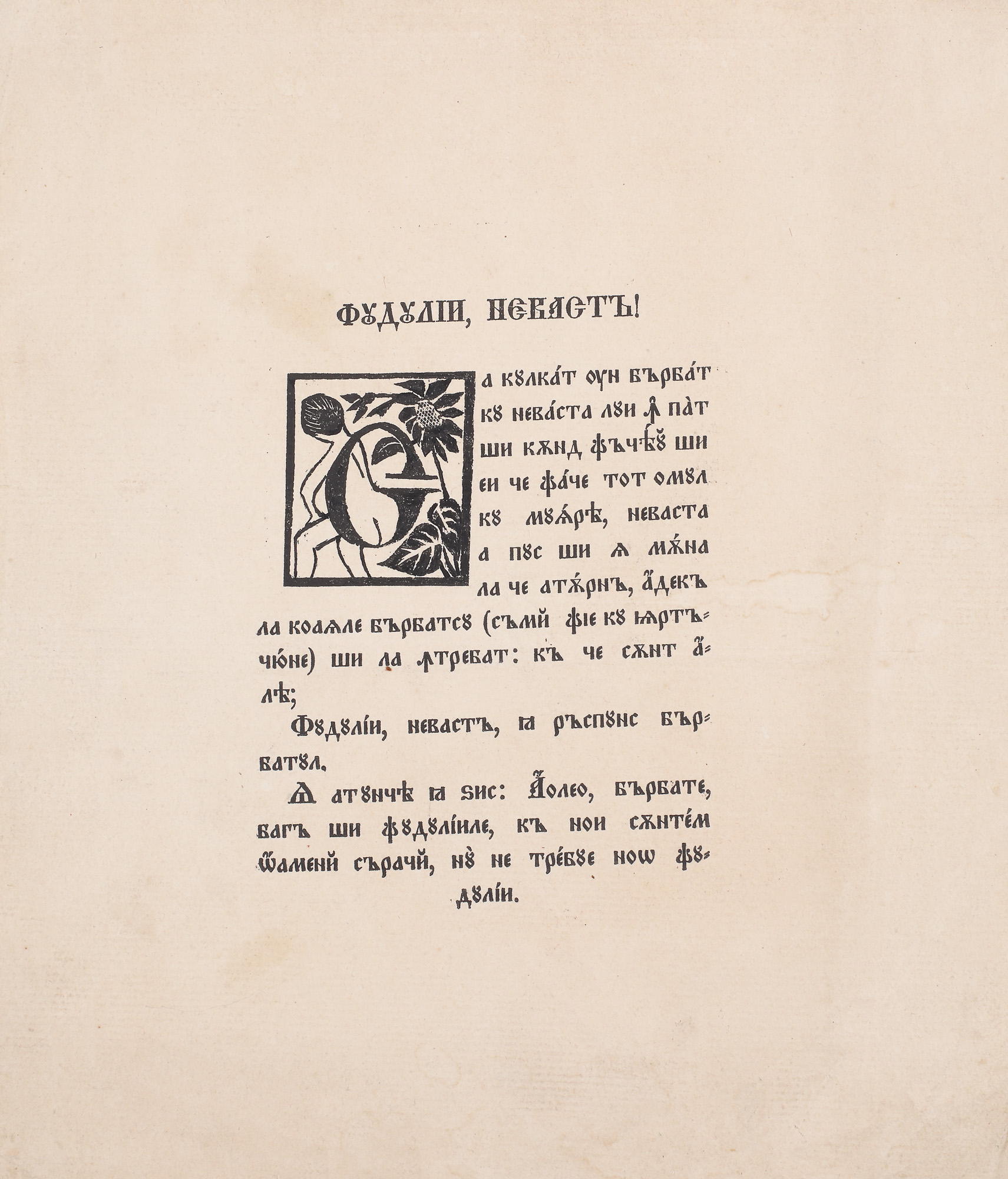 Transcrierea filei: ”Fudulii, nevastă! S-a culcat un bărbat cu nevasta lui în pat și când făceau și ei ce face tot omul cu muerea, nevasta a pus si ea mâna la ce atârnă, adecă la c*****e bărbatu-su (sămi fie cu iertăciune) și la întrebat: că ce sunt acelea; Fudulii, nevastă, ia răspuns bărbatul. Ea atunci i-a zis: Aoleu bărbate bagă și fuduliile că noi suntem oameni săraci, nu ne trebuie nouă fudulii.” Fila reprezintă un fragment nepaginat din ediția amintită, păstrată în această formă înainte de legarea filelor în volum.