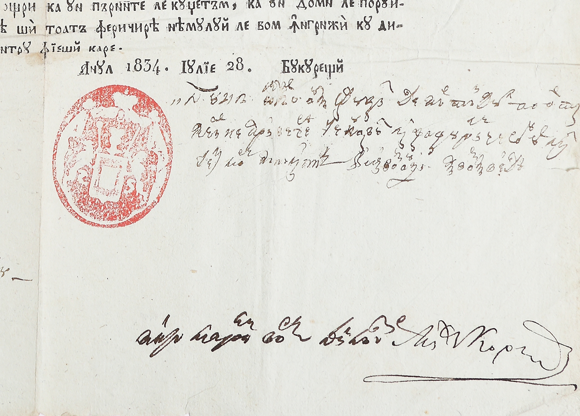 42. Hrisov emis în cancelaria domnitorului Țării Românești, Alexandru Dimitrie Ghica, în data de 28 iulie 1834, în cetatea de scaun din București, piesă de colecție
