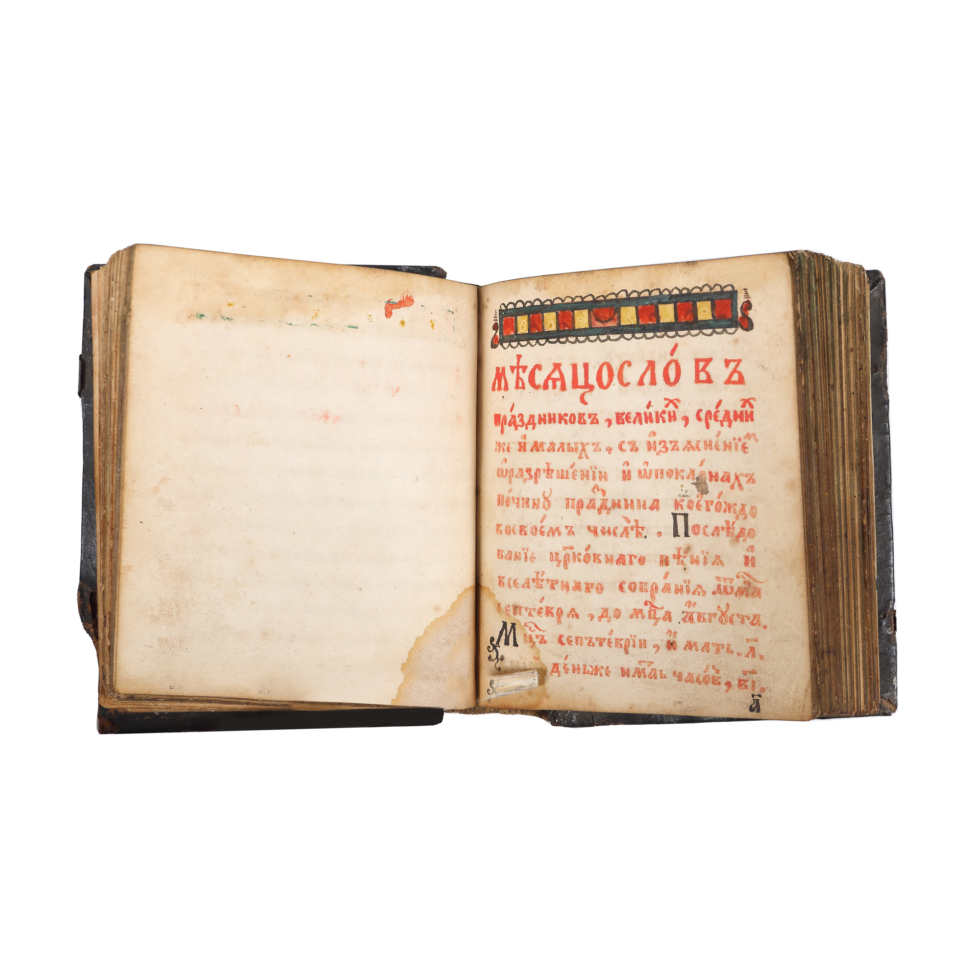 Exemplarul se caracterizează printr-un conținut religios. Are un format mic (12x9,5x3,5 cm), legătura datează din a doua jumătate a secolului al XIX-lea. Scrisul caligrafic, de mână, în limba slavă. Cuprinde 12 psalmi pe 32 de file numerotate în josul paginii. Partea cuprinsă între filele 33 și 37 se referă la Marile sărbători ale anului. Partea a doua a cărții cuprinde Lunile anului bisericesc, adică perioada 1 septembrie-30 august cu o prezentare a fiecărei luni în parte. La începutul cărții se află o filă cu imaginea lui Isus Hristos; desenul îl înfățișează pe Isus înveșmântat într-o haină de culoare verde și o mantie roșie pe umeri, așezat într-un chenar geometrizat, într-o atitudine de binecuvântare a credincioșilor. Scrisul caligrafic, realizat cu cerneală neagră și roșie, imitând tiparul, cu 13 rânduri pe pagină, frumos aliniate, ceea ce denotă o eventuală liniere prealabilă a paginilor. Paginile prezintă și elemente de decor, precum frontispicii și inițiale realizate mai ales cu cerneală roșie și încadrate de chenare liniare. Oglinda textului (format 9x7 cm) se încadrează foarte bine în pagină. Alături de filele scrise, exemplarul păstrează și șapte file libere, nescrise, astfel: două la începutul cărții, una la sfârșitul psalmilor și patru la final. Volumul este legat în piele de culoare brună care îmbracă și coperțile din lemn. Legătura datează din a doua jumătate a sec. al XIX-lea și este marcată de trecerea timpului, ca de altfel întregul exemplar. Blocul de carte păstrează în întregime numerotarea filelor în josul paginii. Pe forzațul copertei a doua se află o notă scrisă în limba slavonă care arată că exemplarul de față a fost redactat de Efim Vasiliev în anul 1868, luna octombrie, ziua 30. În partea inferioară a textului acesta și-a desenat mâna dreaptă cu tocul între degete.