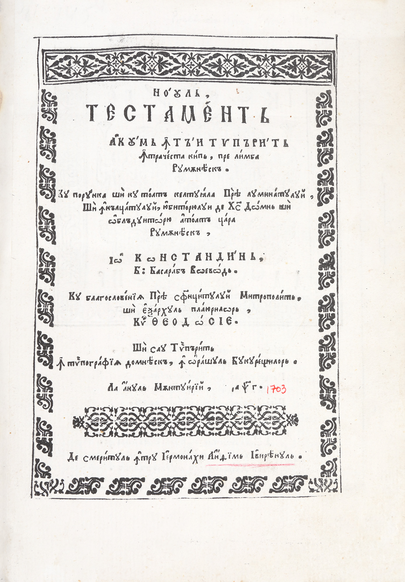 49. ”Noul Testament” al lui Antim Ivireanul, din vremea lui Constantin Brâncoveanu, București, 1703, piesă extrem de rară, de colecție