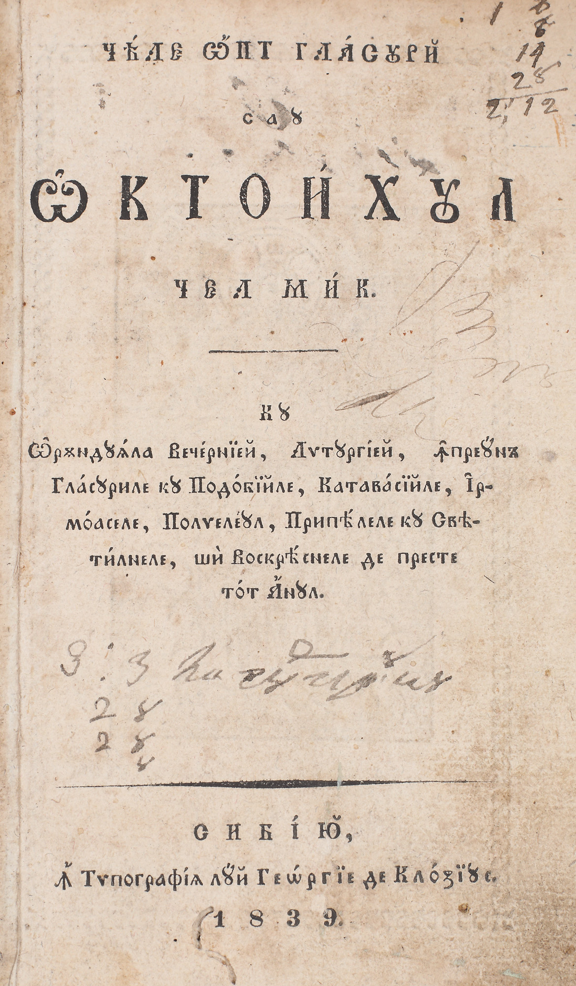 48. ”Octoihul cel mic”, tipărit la Sibiu, 1839