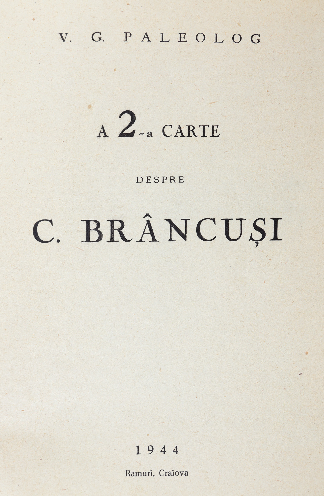 72. ”Cartea a doua despre C. Brâncuși”, de Vasile Georgescu Paleolog, Craiova, 1944