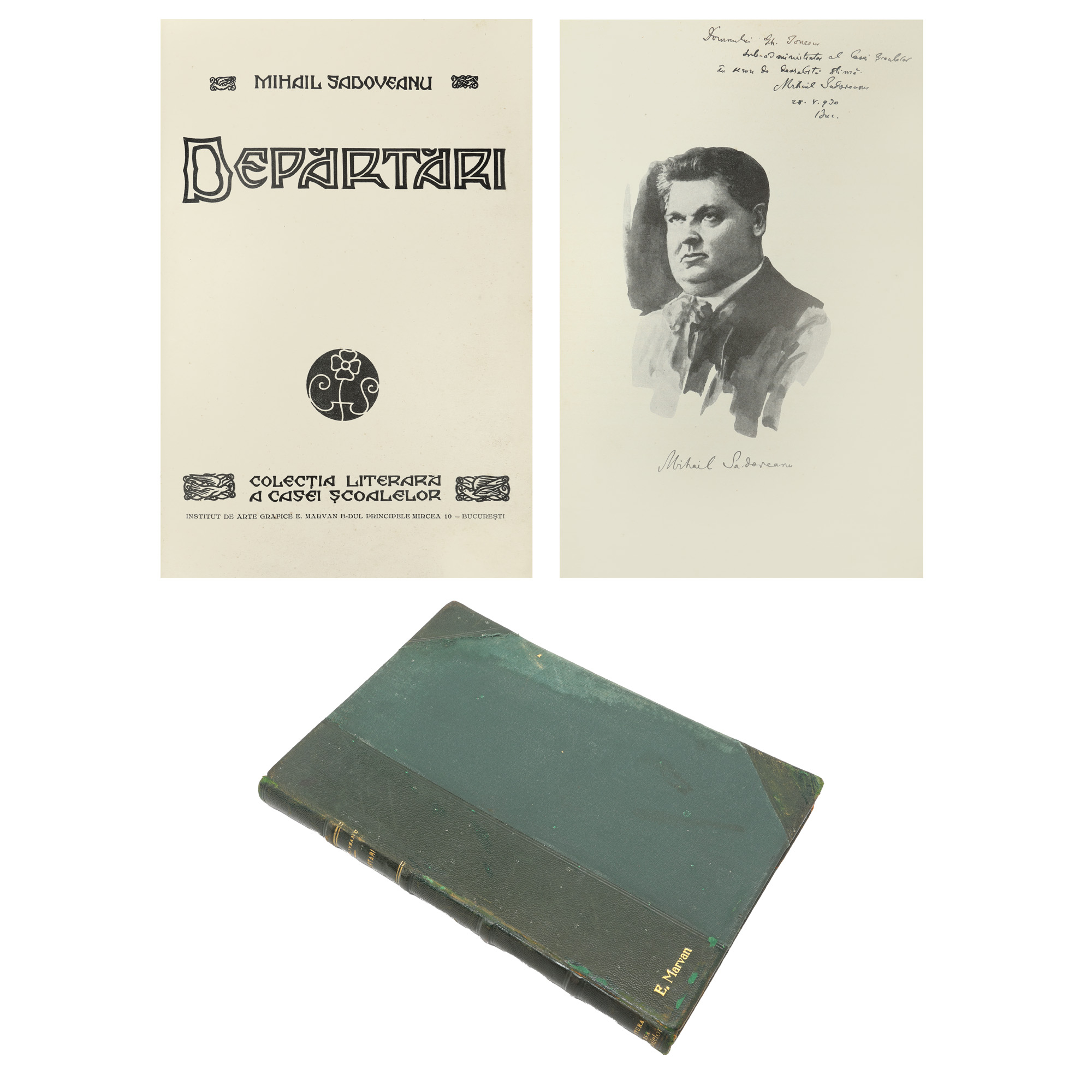 63. ”Depărtări”, de Mihail Sadoveanu, ediție princeps, București, 1930, cu dedicația și semnătura autorului către Gh. Ionescu