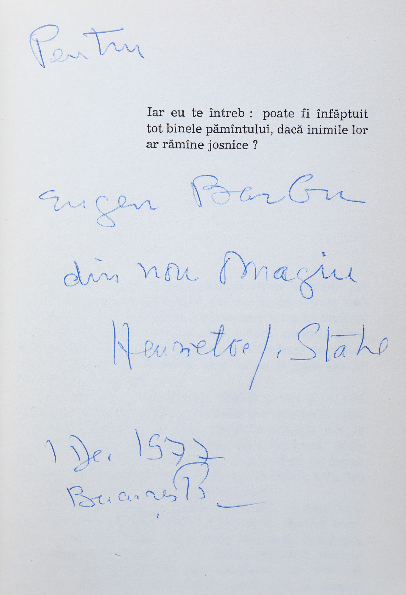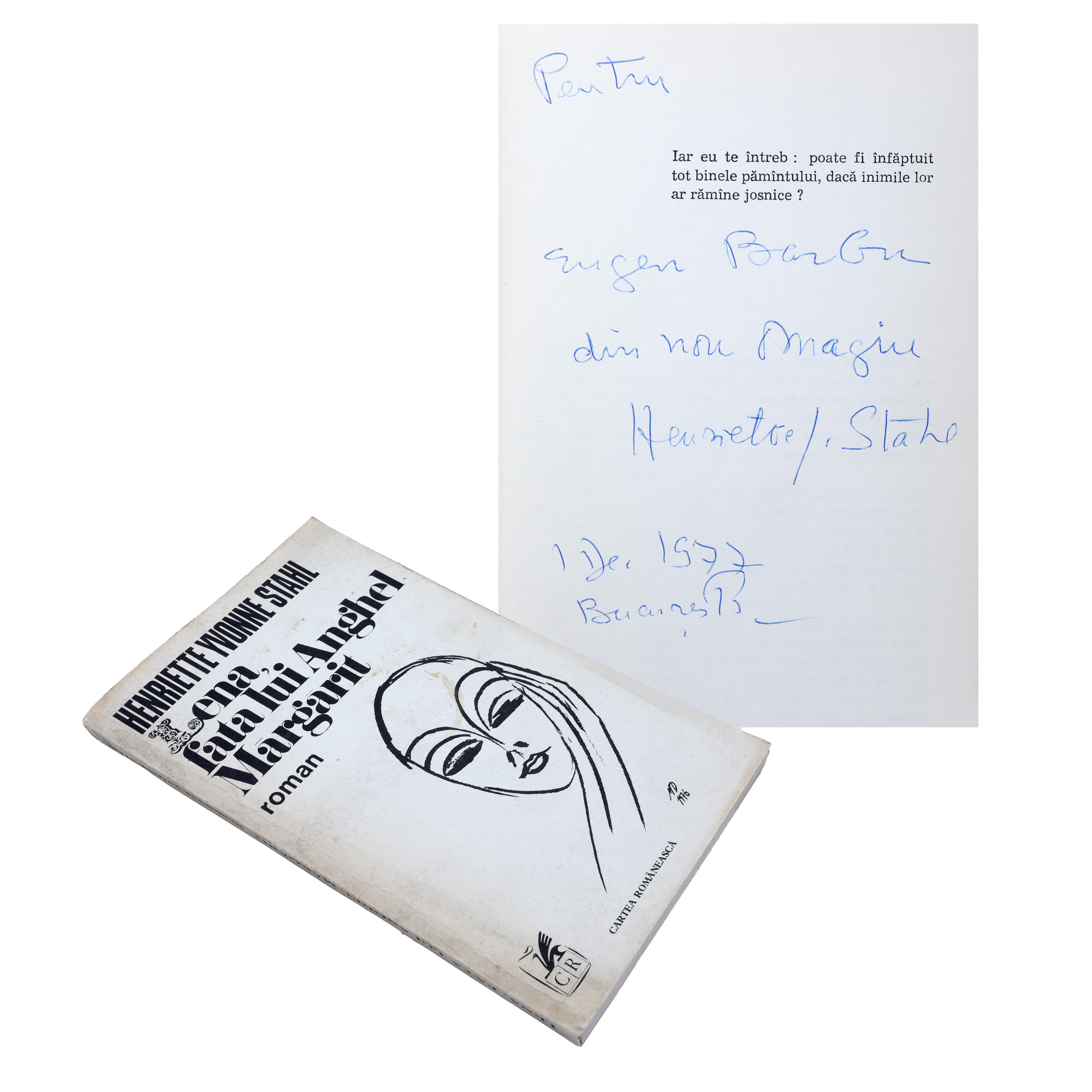 100. ”Lena, fata lui Anghel Mărgărit”, de Henriette Yvonne Stahl, București, 1977, cu dedicație către Eugen Barbu și semnătura olografă a autorului