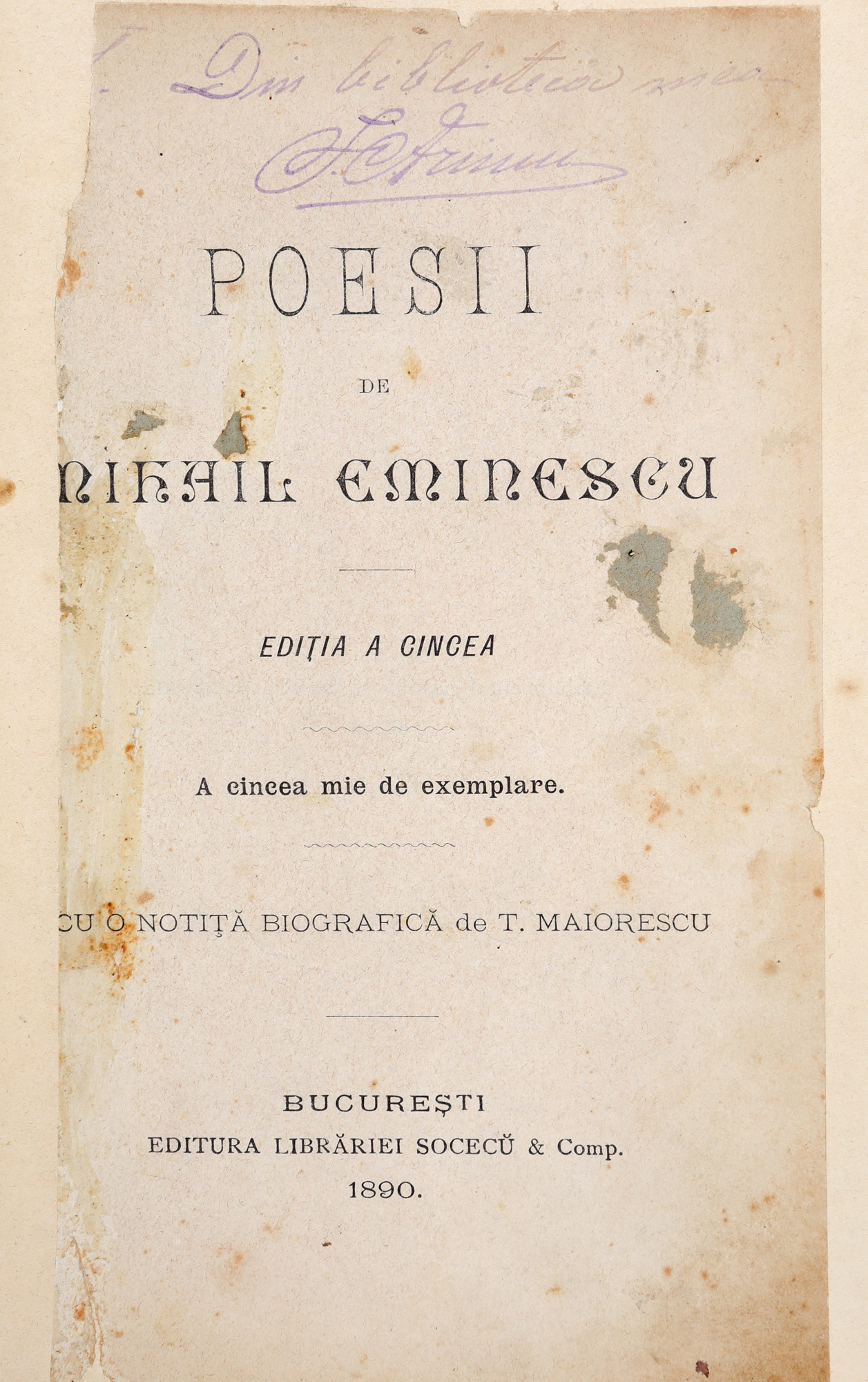 54. ”Poesii”, de Mihai Eminescu, ediția a cincea, București, 1890, cu o prefață de Titu Maiorescu