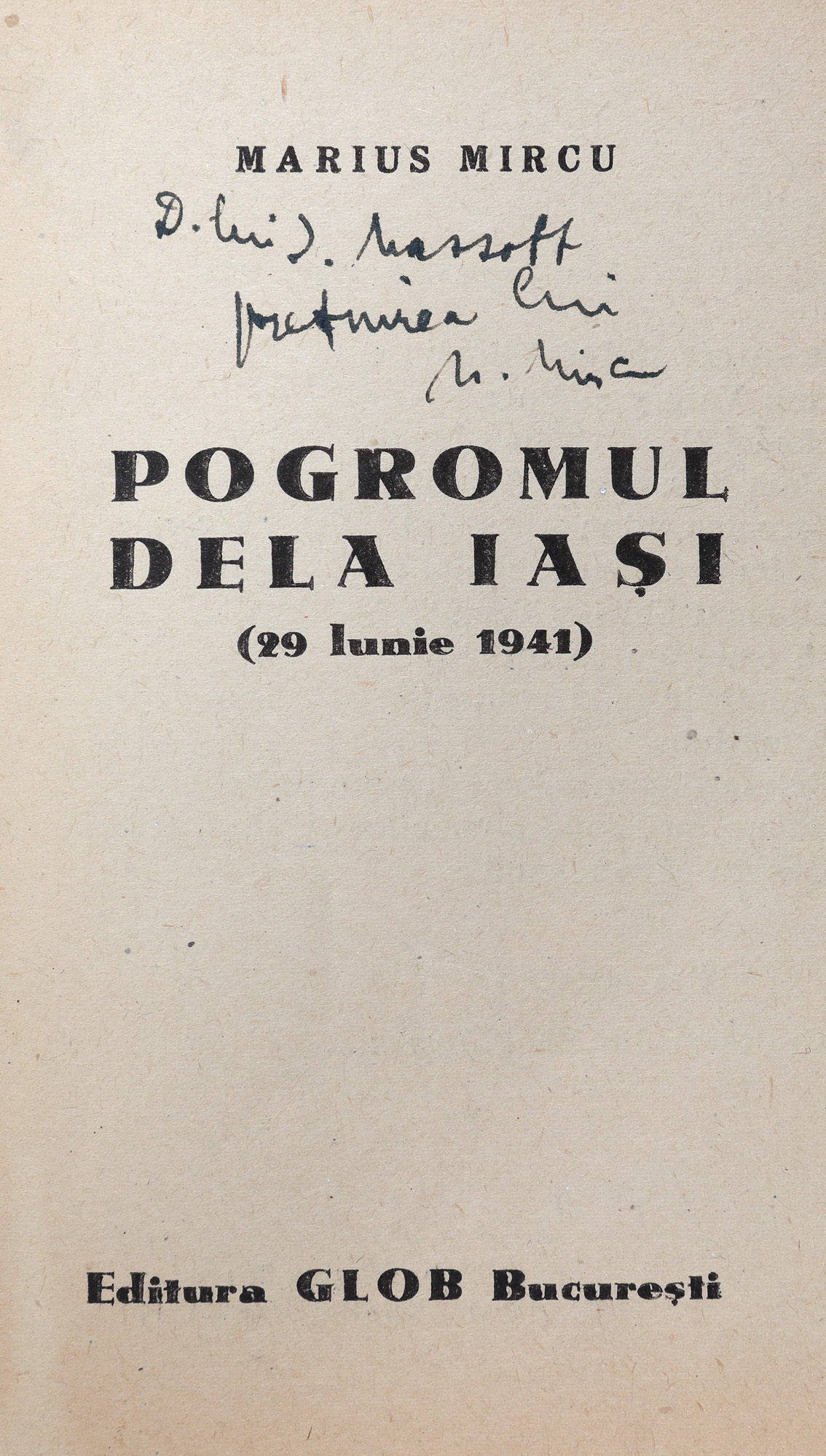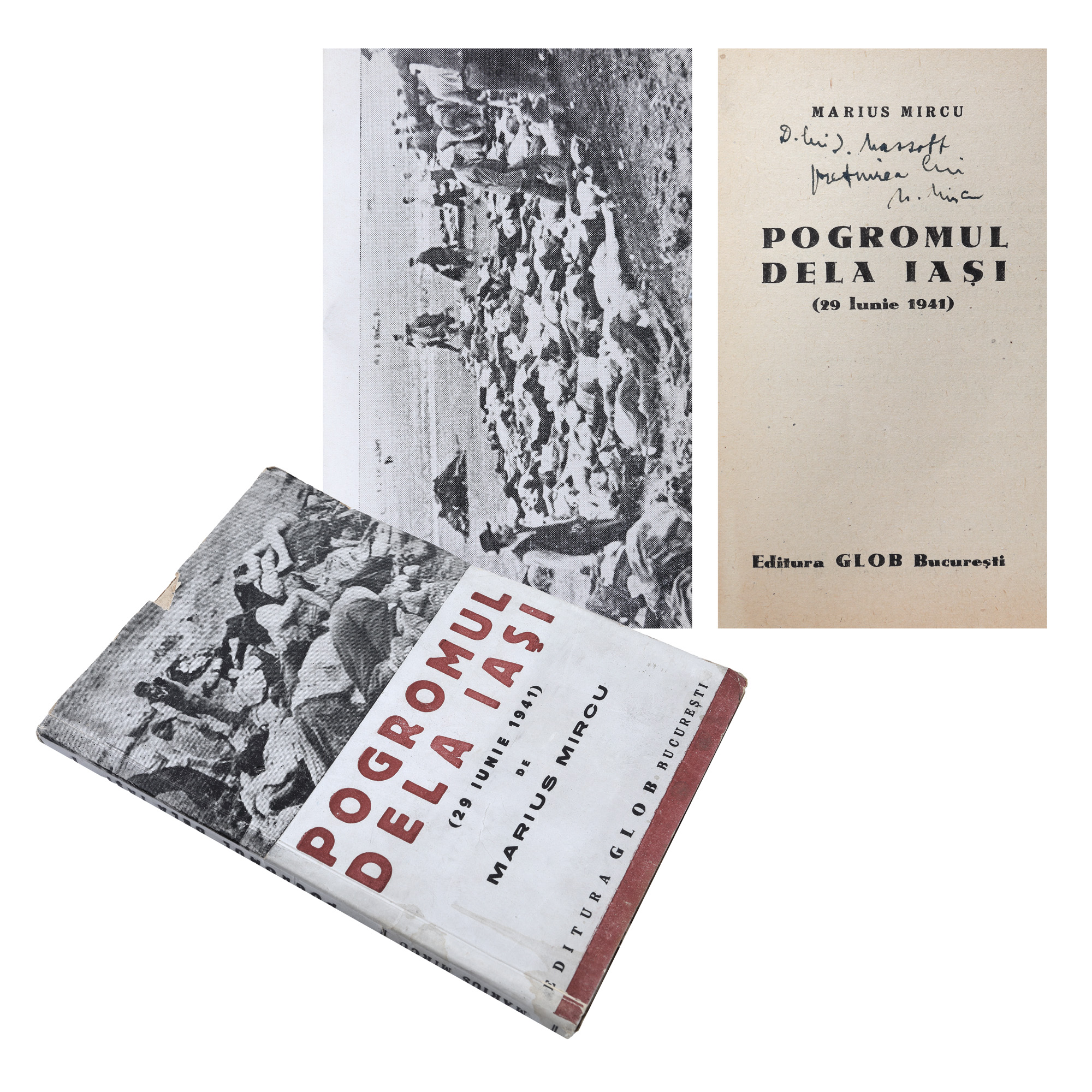 46. ”Pogromul de la Iași”, de Marius Mircu, București, 1941, cu dedicația autorului