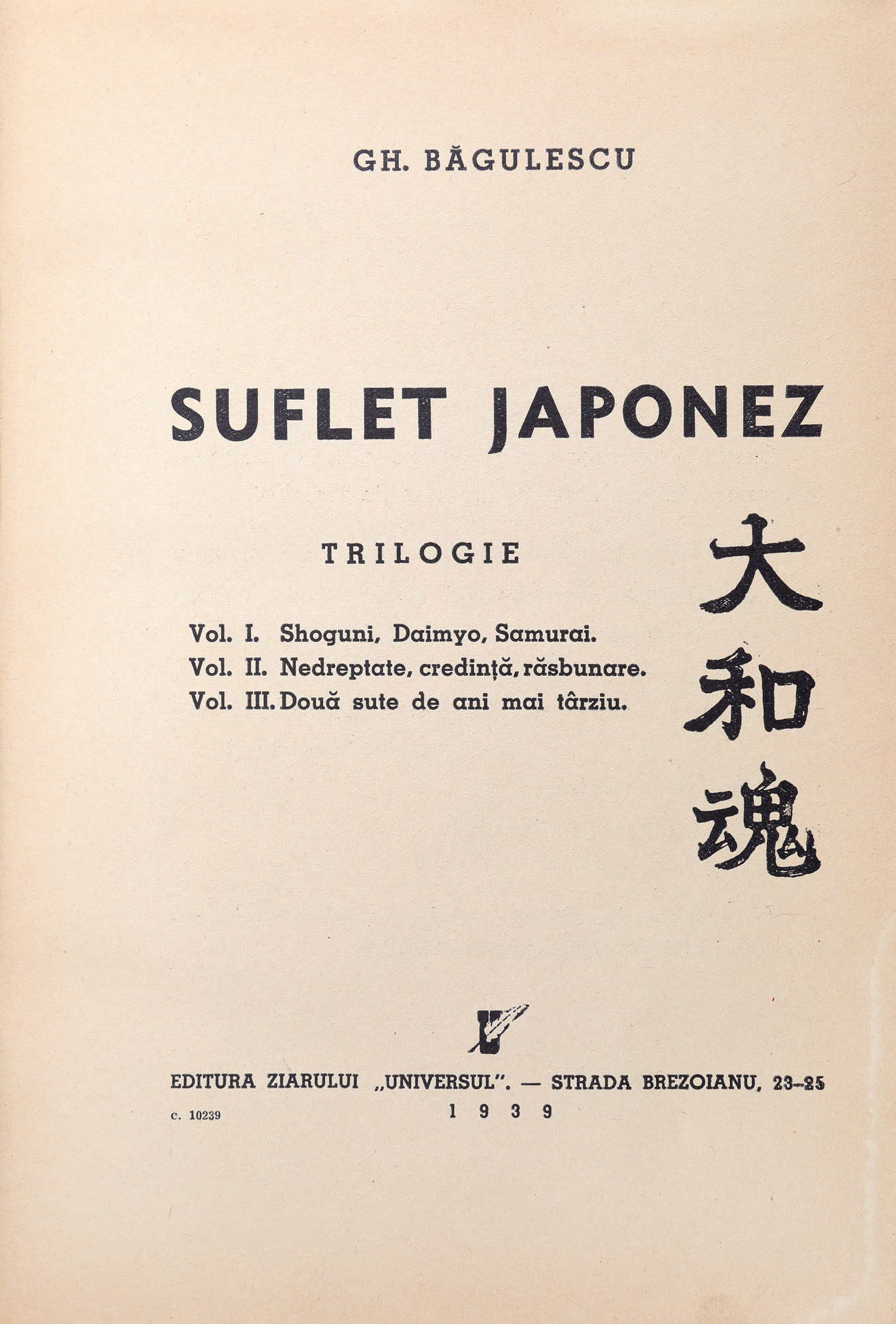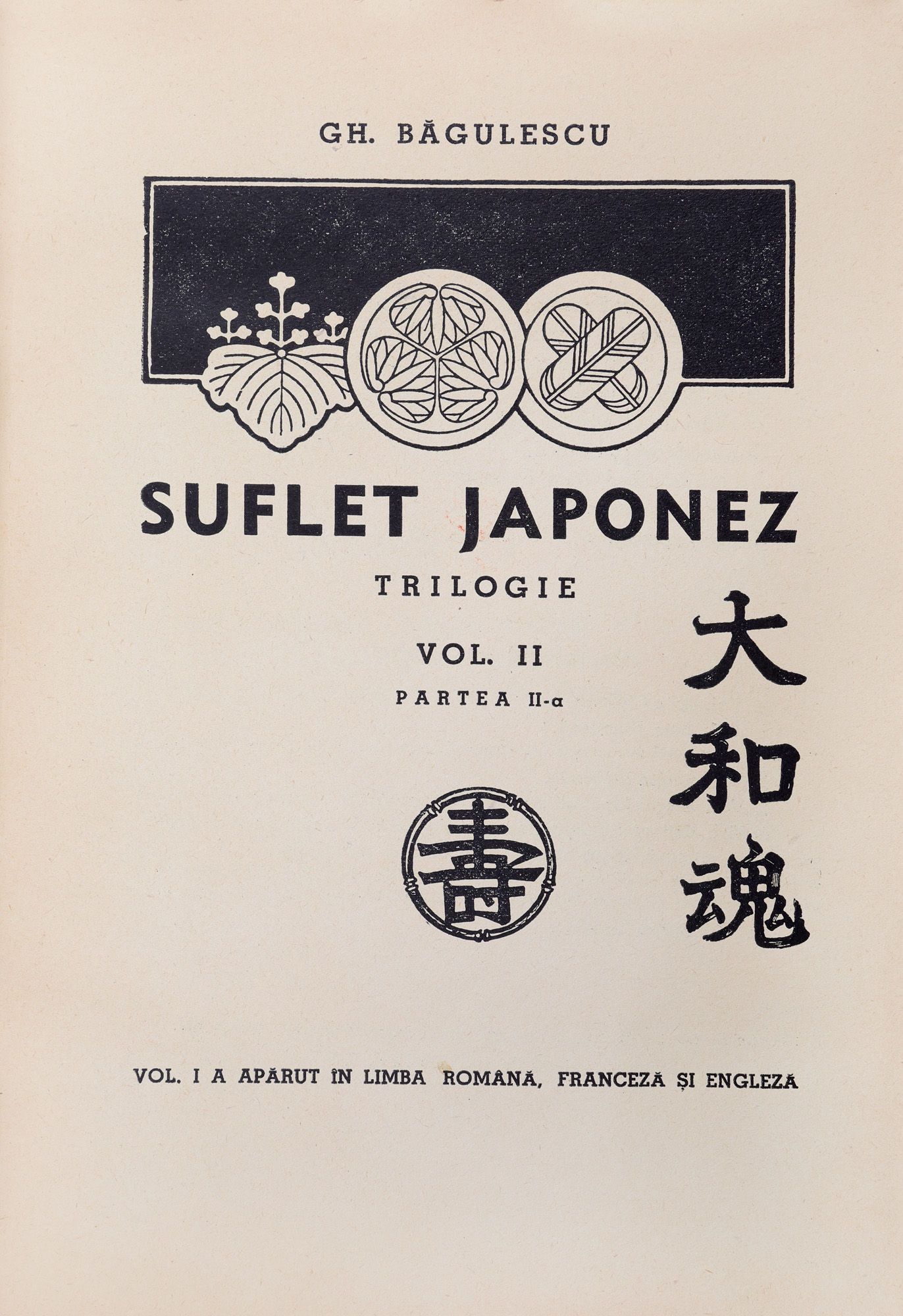 103. ”Suflet Japonez”, de Gheorghe Băgulescu, trei volume, București, 1939, cu dedicație