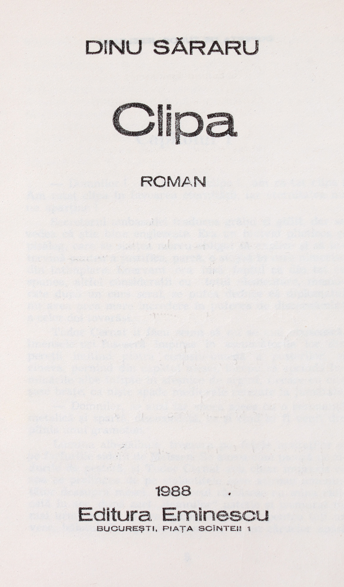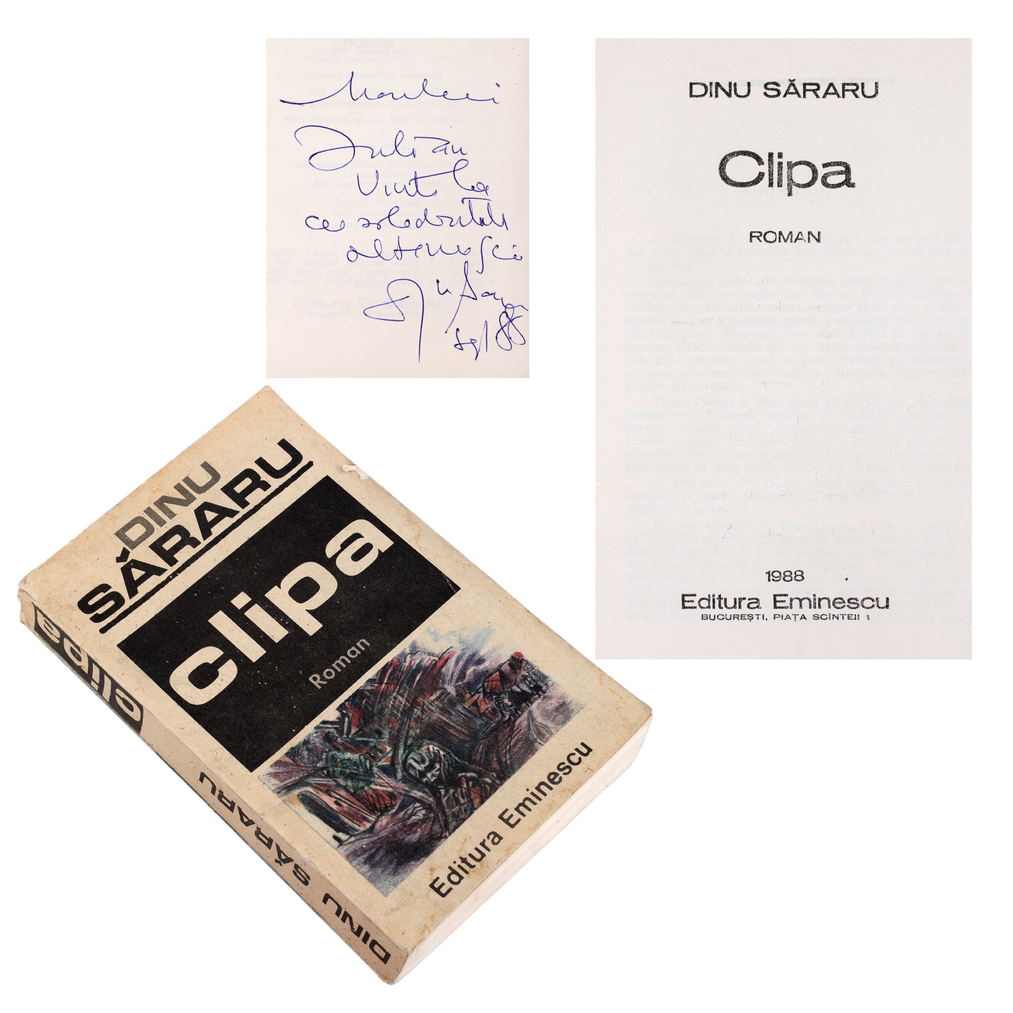 57. ”Clipa”, de Dinu Săraru, București, 1988, cu semnătura olografă a autorului