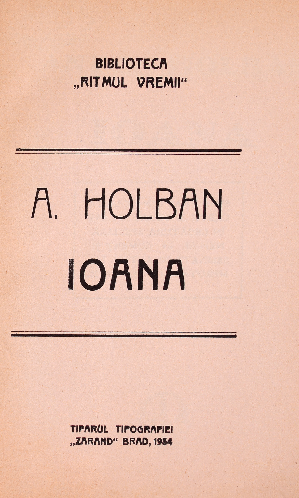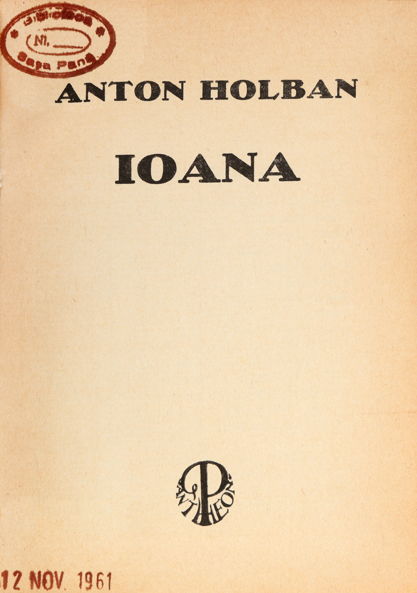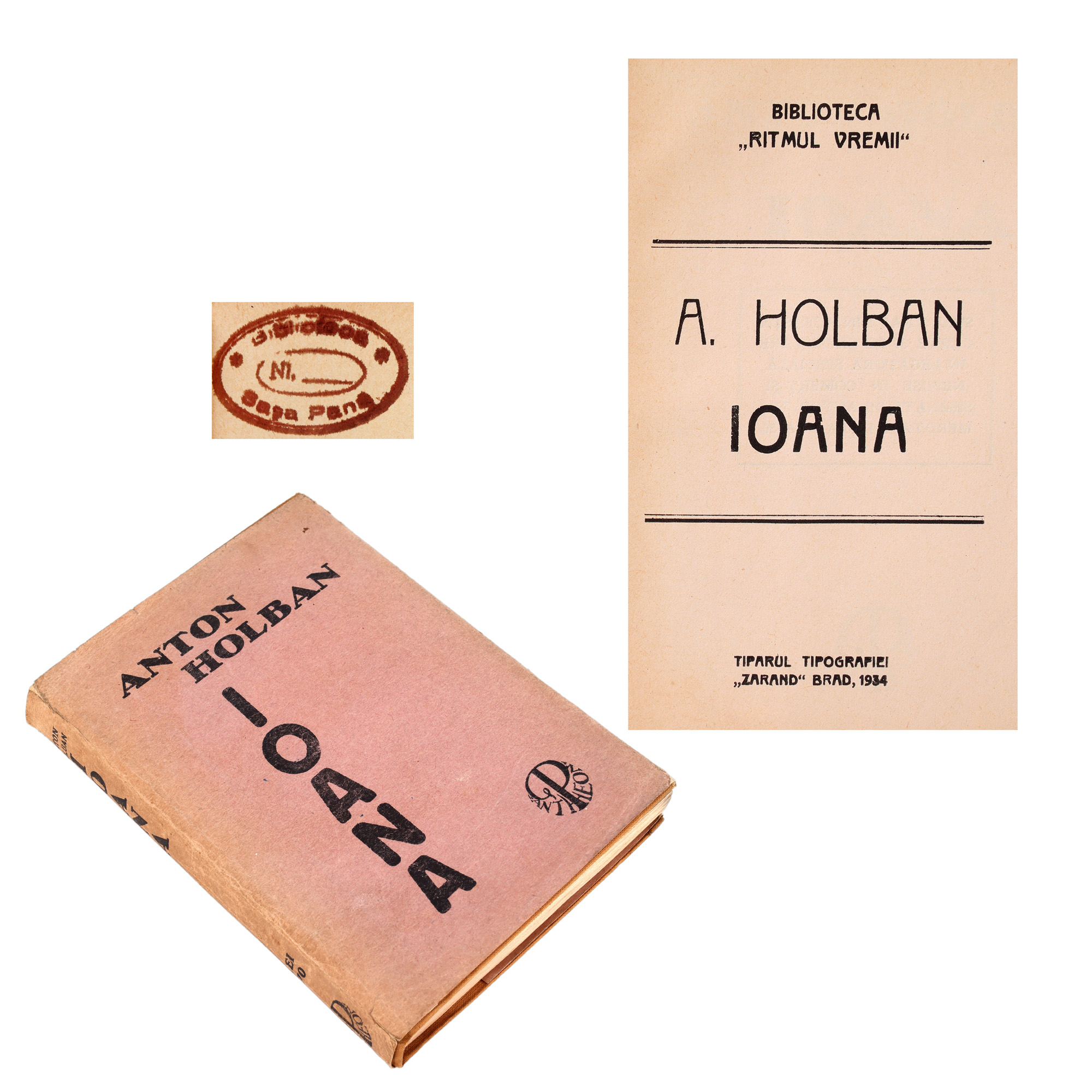 58. ”Ioana”, de Anton Holban, ediție princeps, Brad, 1934, cu ex-libris, provine din colecția Sașa Pană